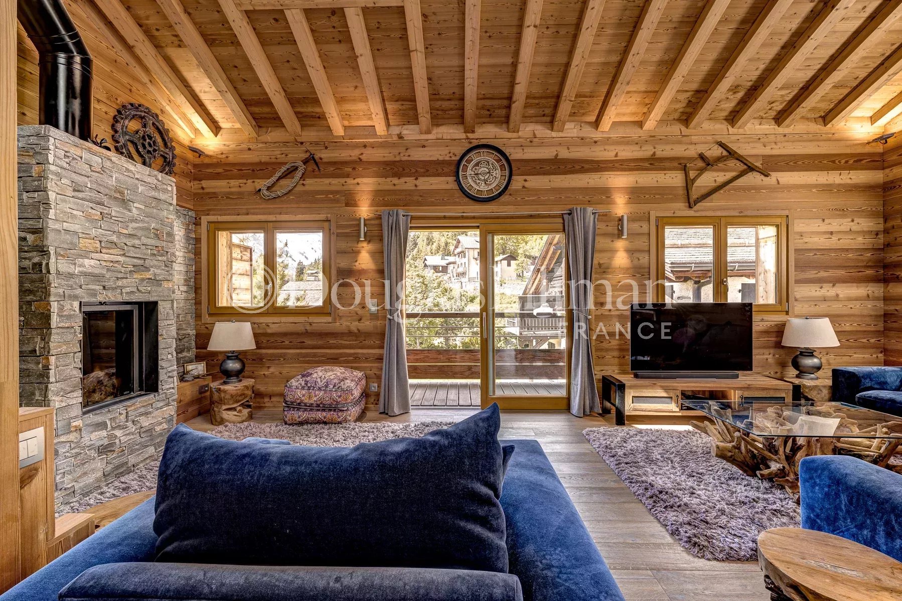 La pièce de vie dispose d'une impressionnante double hauteur sous plafond et s'ouvre sur un balcon orienté sud avec une vue magnifique sur les sommets dont le Mont Blanc. Le chalet bénéficie d'une excellente efficacité énergétique (DPE A) et dispose d'un double garage, d'un jacuzzi et d'un sauna tonneau.