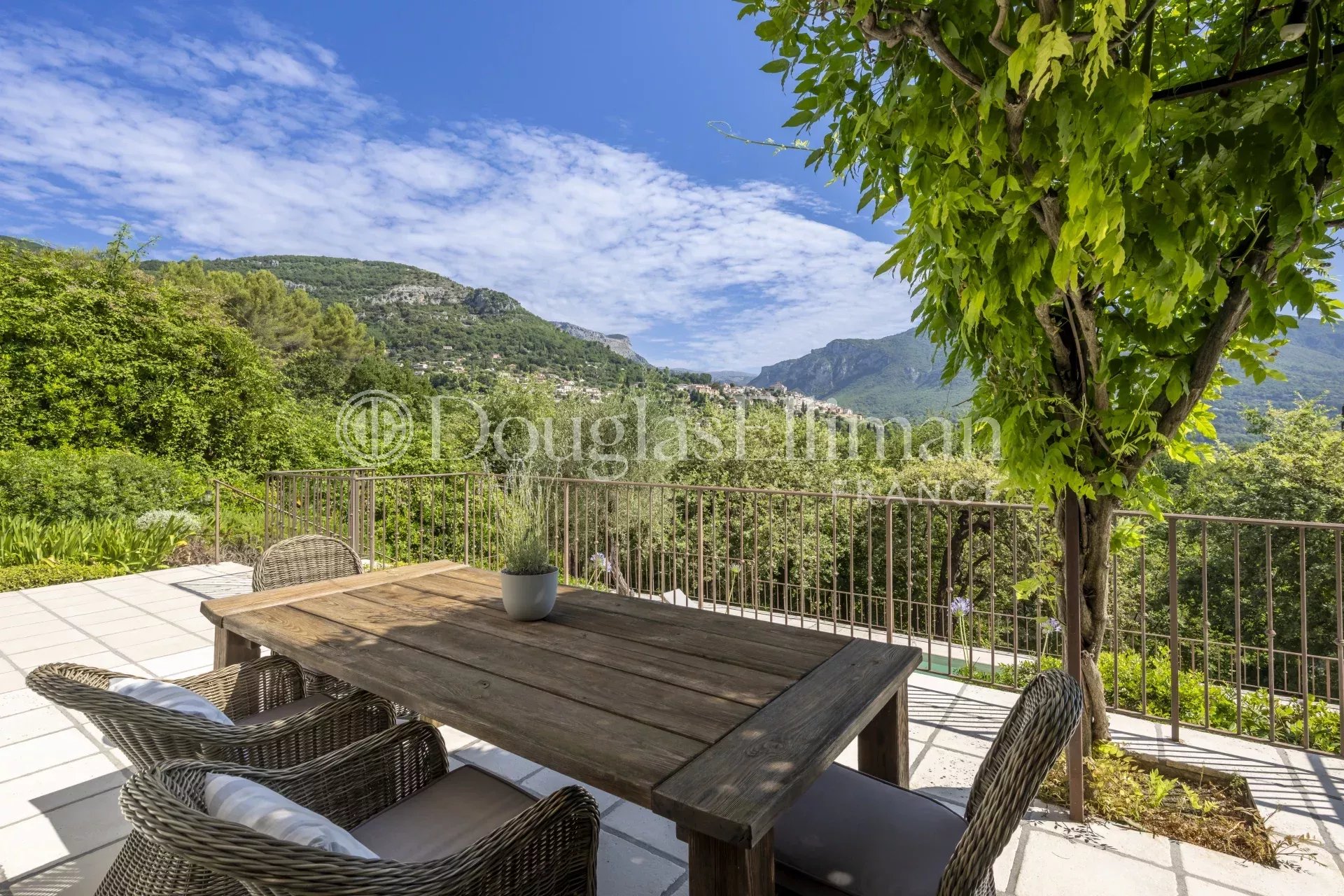 Située Perchée sur un terrain surélevé, cette splendide maison familiale offre une vue panoramique imprenable sur le charmant village de Le Bar-sur-Loup et ses collines et montagnes environnantes.