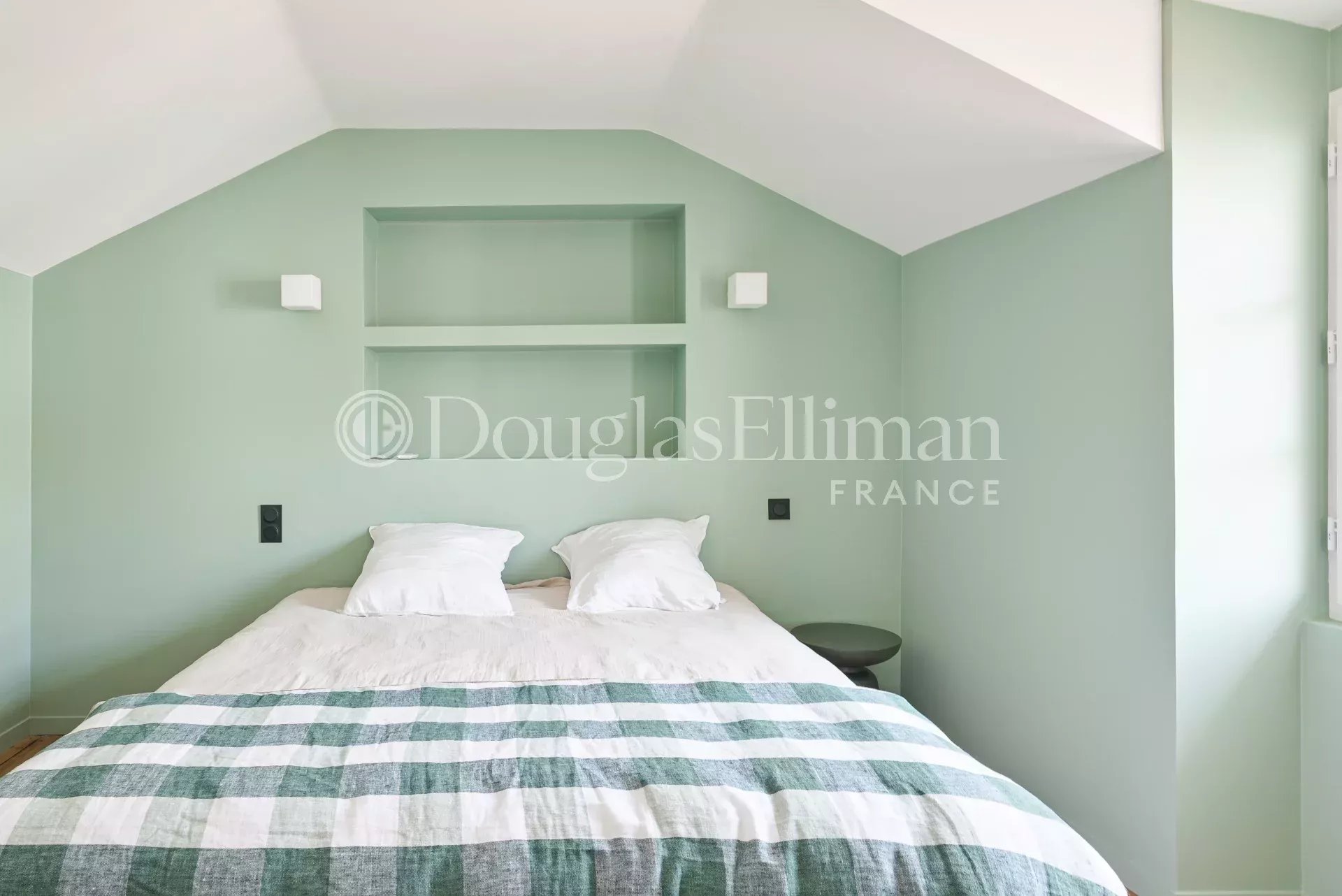 Les deux niveaux supérieurs sont dédiés à l’espace nuit : quatre chambres, deux salles d’eau et des toilettes.