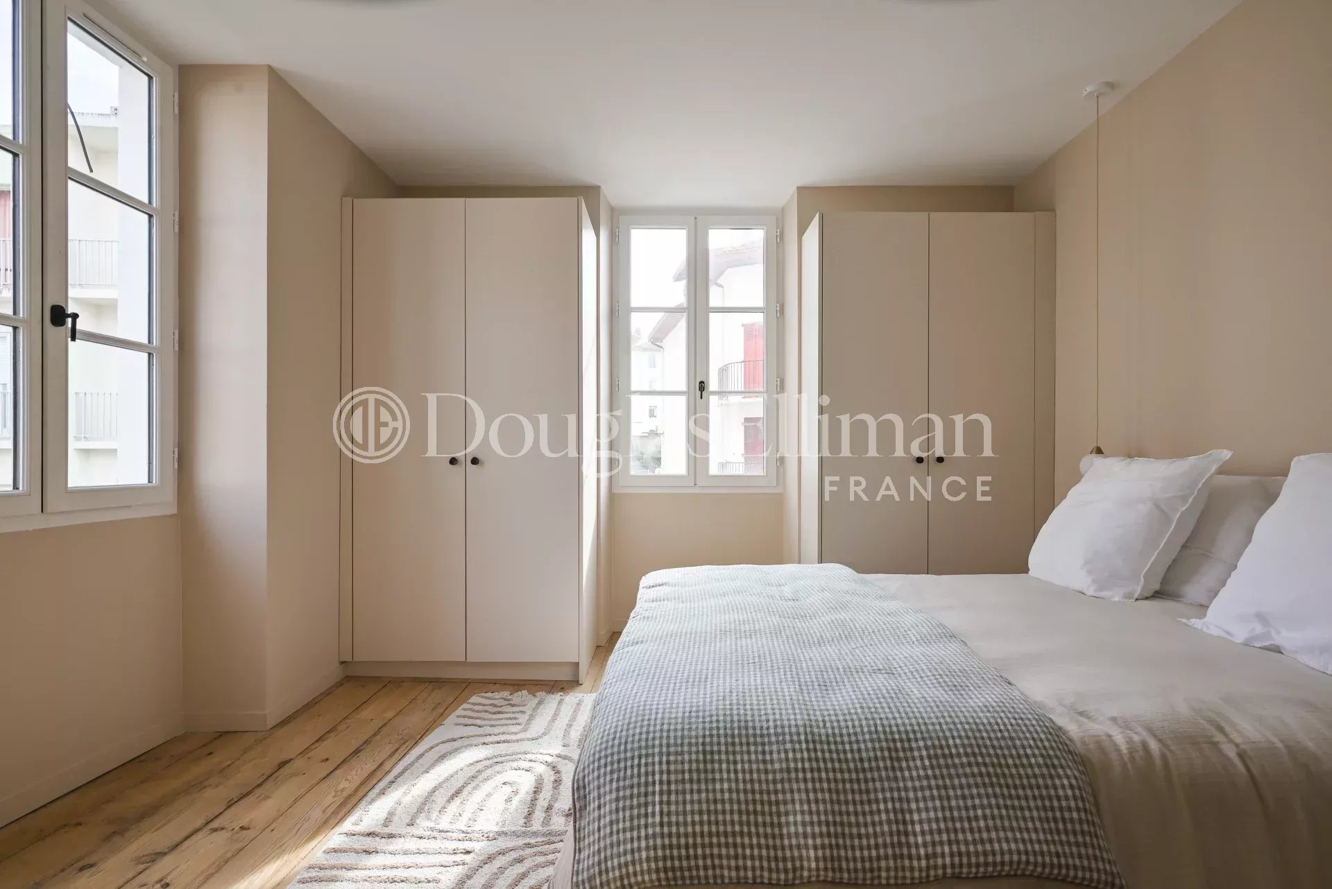 Situé au cœur du centre-ville de Biarritz, à quelques pas des Halles et des plages, cet appartement aux allures de maison de ville prend place dans une élégante bâtisse traditionnelle des années 1930 divisée en deux lots. Il développe 128 m² répartis sur trois niveaux.
