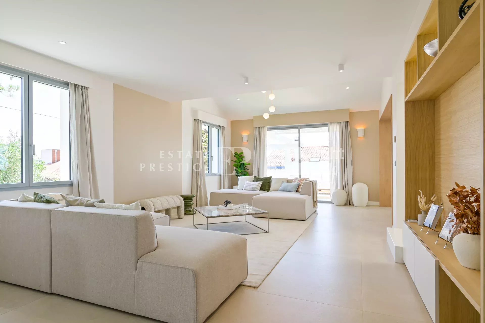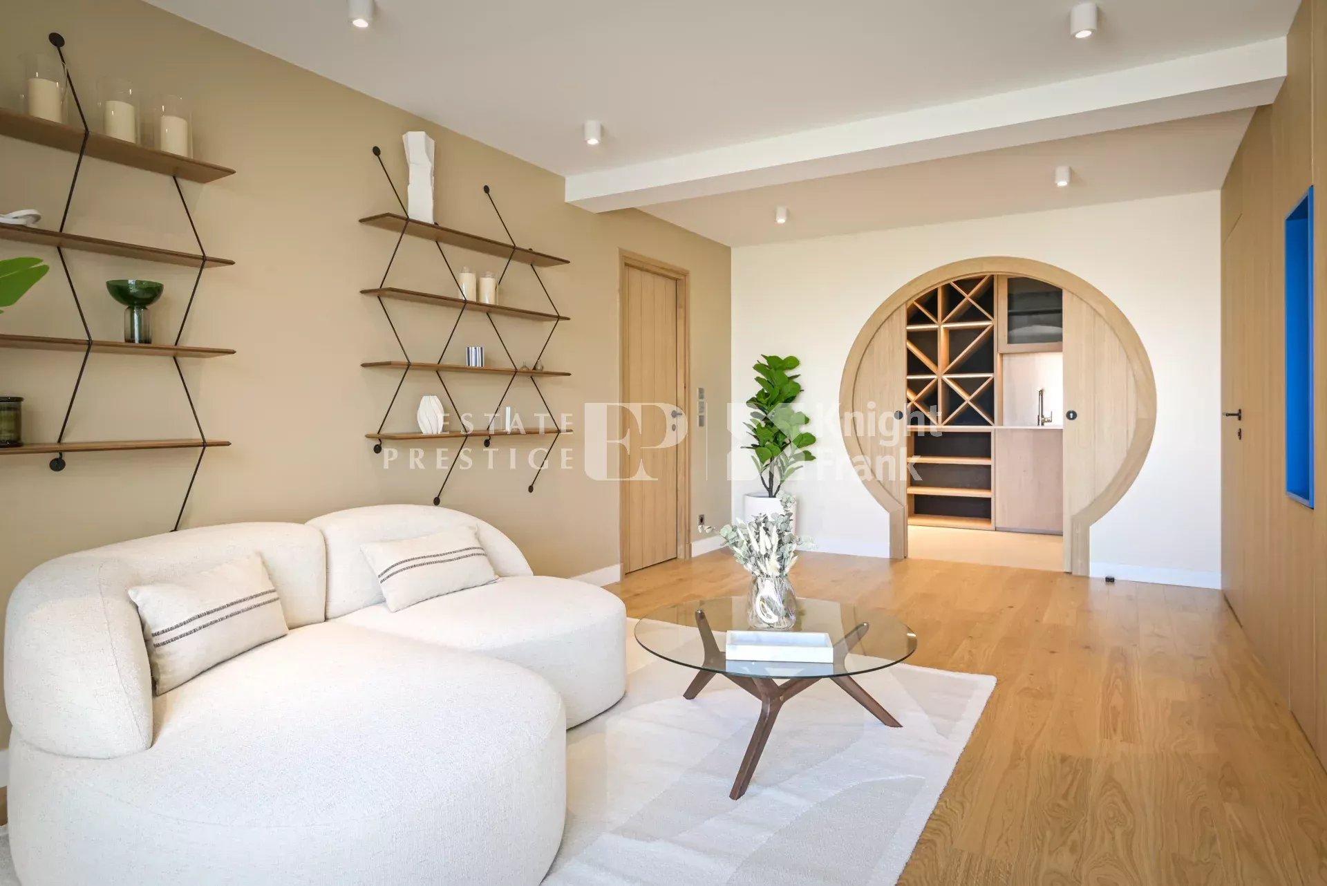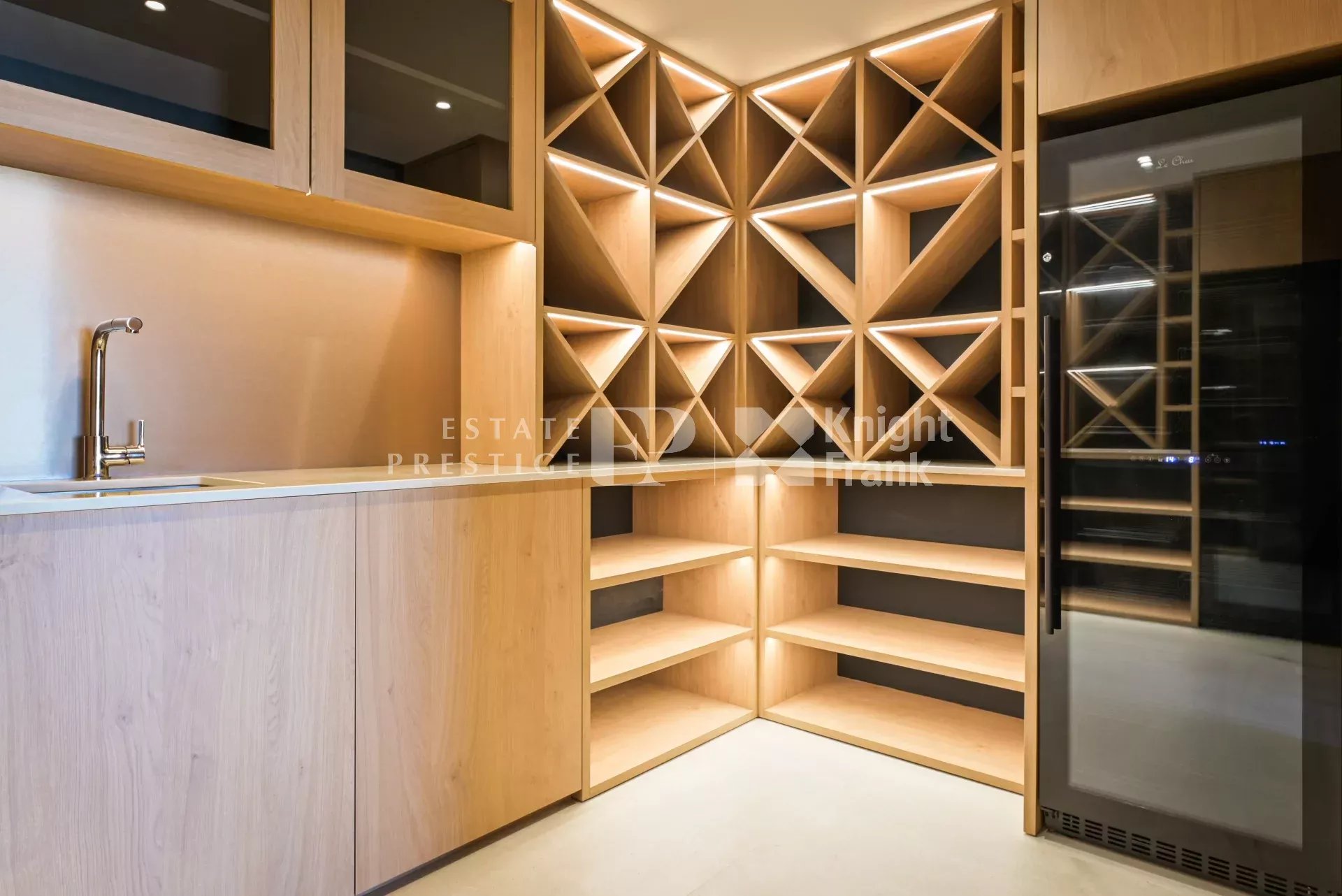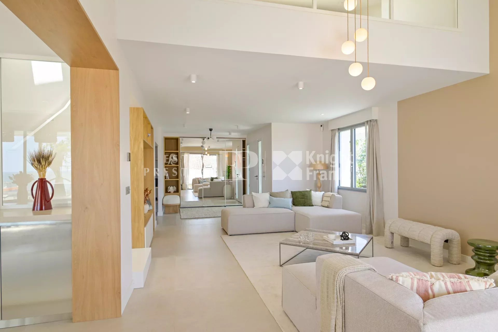 La luminosité naturelle baigne les volumes généreux du séjour. L’espace de vie principal s’ouvre harmonieusement sur de larges terrasses tournées vers l’océan et une piscine suspendue chauffée. Le salon, spacieux et chaleureux, prolonge naturellement sur la cuisine ouverte, entièrement équipée. À l’extérieur, une cuisine d’été équipée, couverte par une pergola bioclimatique motorisée complète idéalement cet espace de réception.