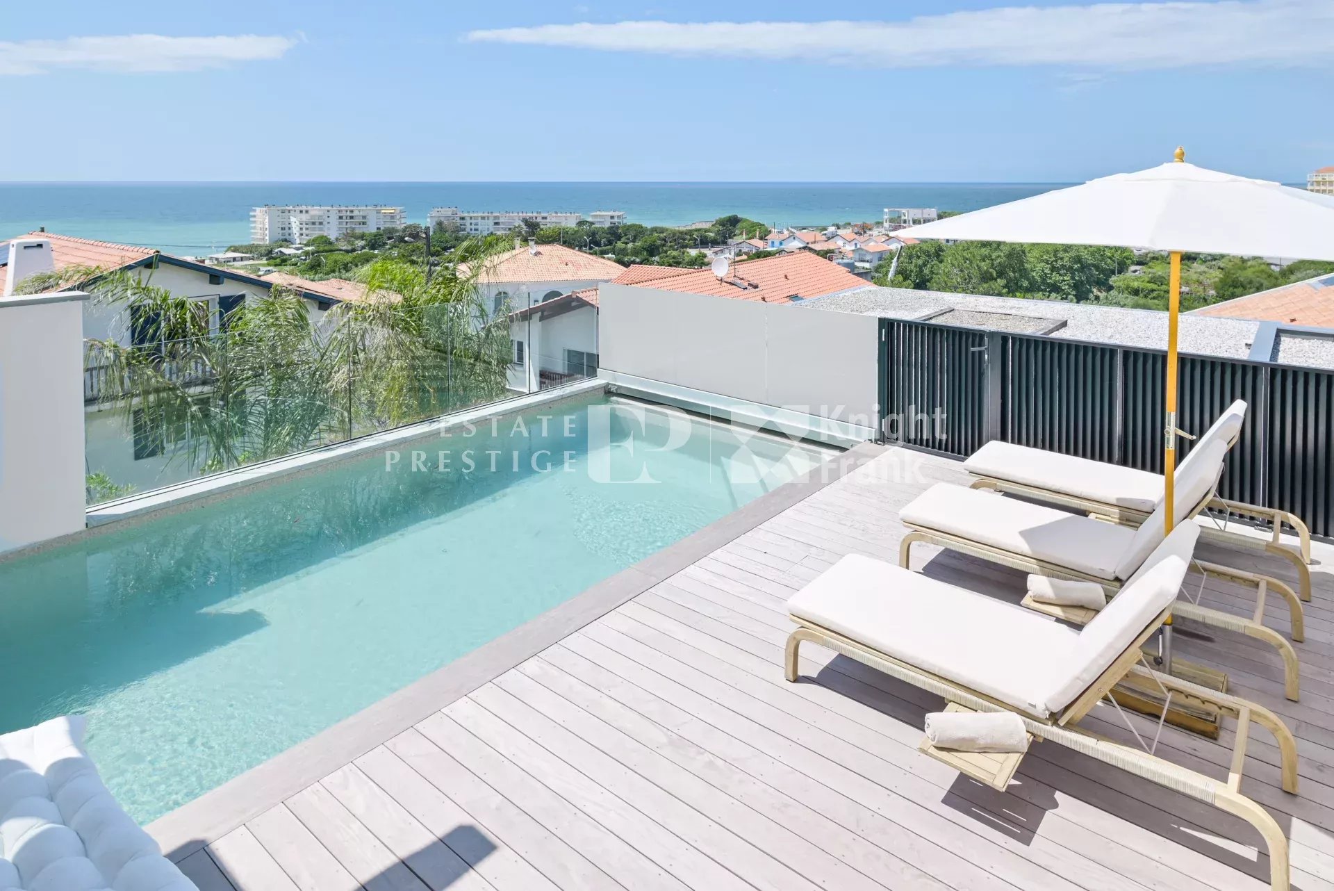 À Biarritz, à quelques pas de la plage de la Milady, cette villa neuve de 334 m² habitable conjugue élégance, modernité et emplacement privilégié, pour les amateurs de grands espaces, d’océan à perte de vue et de finitions haut de gamme sur un terrain d’environ 1 200 m², paysagé avec soin.