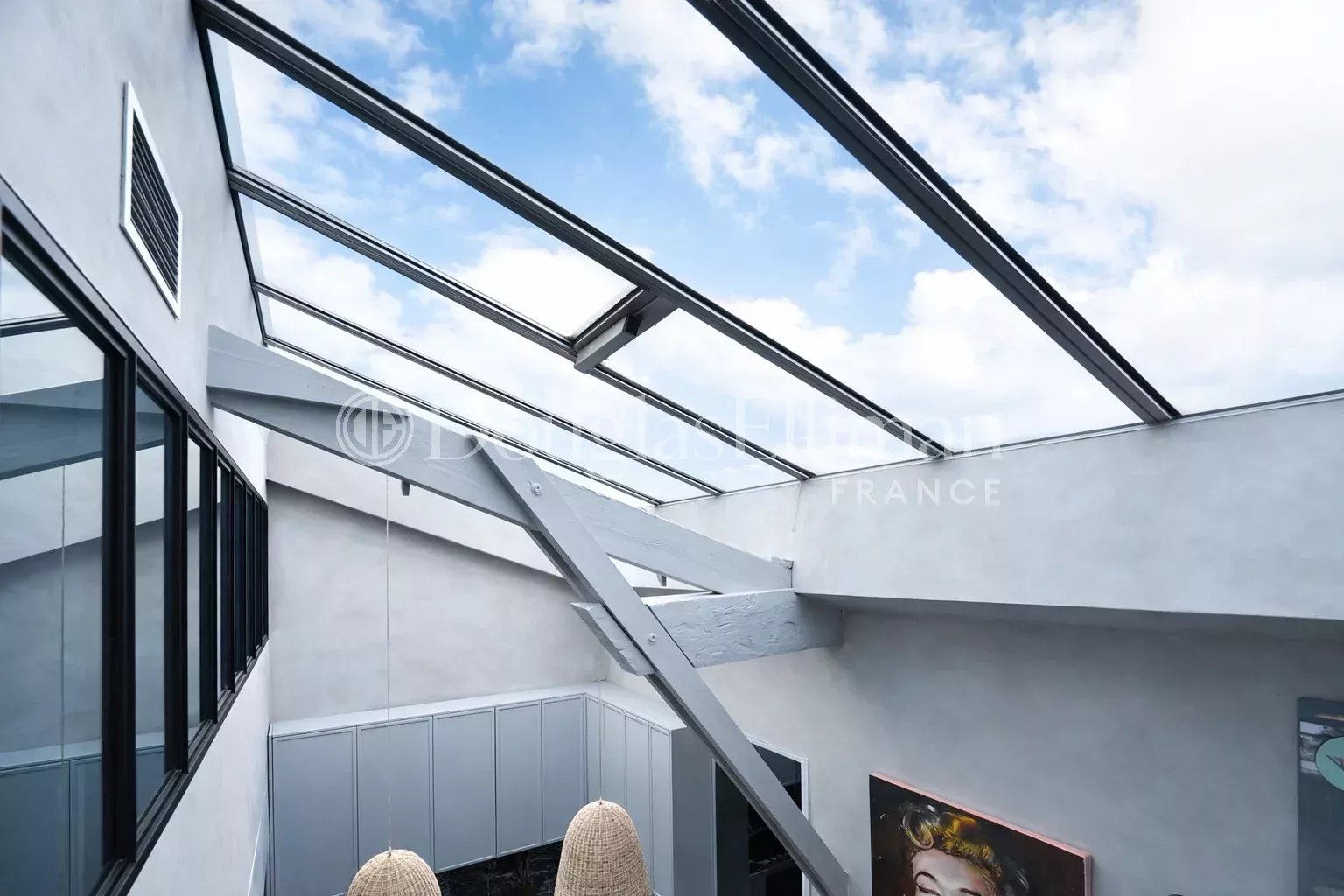 La cuisine, véritable œuvre d'art, est entièrement équipée avec des matériaux haut de gamme, agencée sous une superbe verrière qui invite la lumière à pénétrer en abondance, créant ainsi une atmosphère à la fois moderne et conviviale.