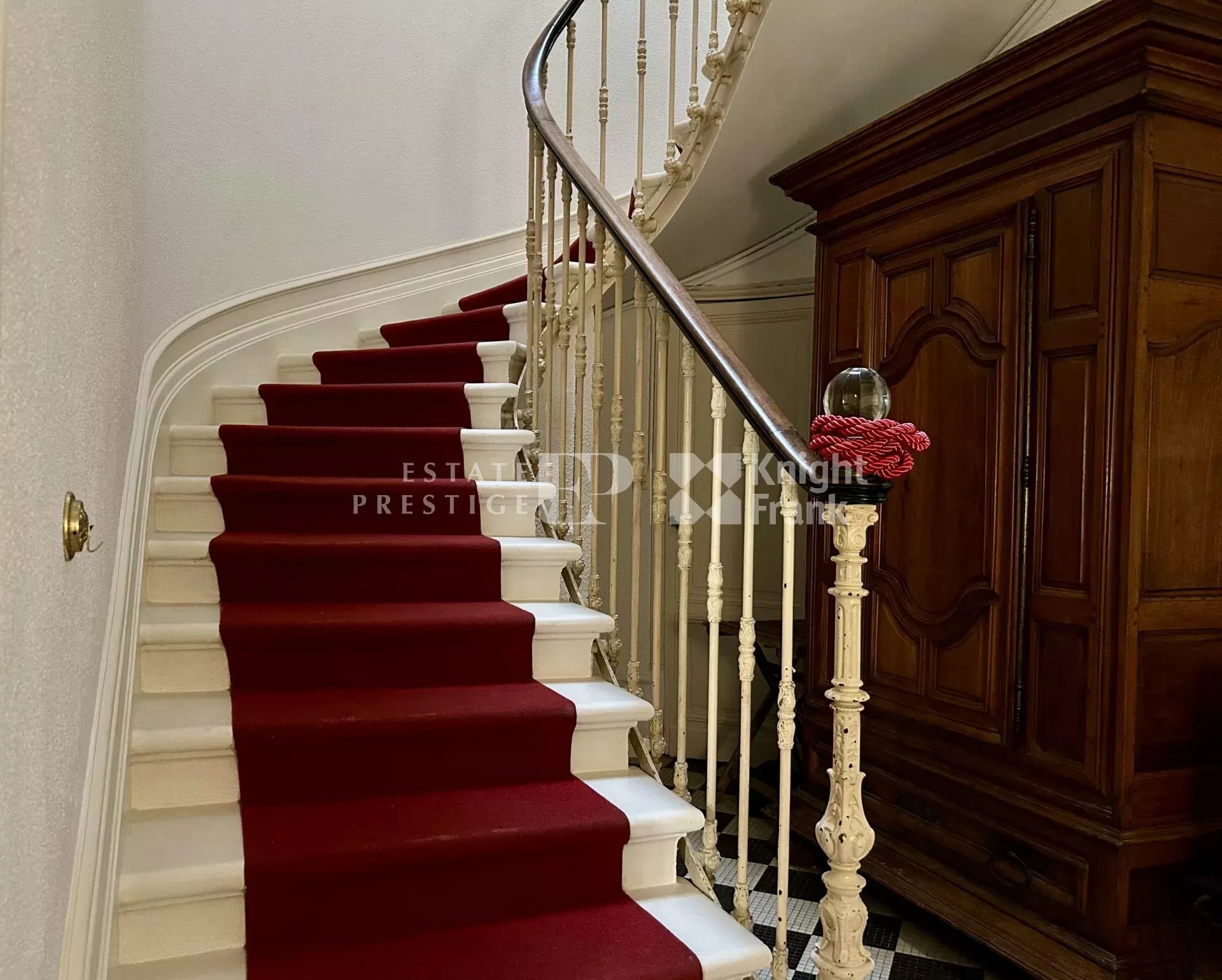 430 m² habitables répartis sur quatre niveaux. Neuf chambres possibles, espaces de réception en enfilade, cave voûtée. L'architecture permet plusieurs scénarios, résidence familiale, activité libérale au rez-de-chaussée, ou projet locatif à rendement démontré.