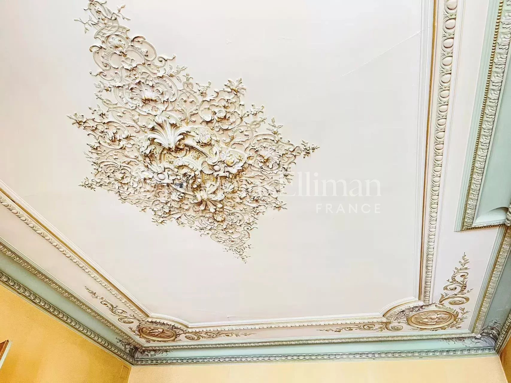 Dès l’entrée, un vaste hall vous accueille et mène à un salon lumineux et une salle à manger ouvrant sur une terrasse intime. Un escalier d’époque dessert les étages supérieurs, où une suite parentale occupe le premier étage, suivie de cinq chambres avec salles de bains réparties sur les deux étages suivants. Le dernier niveau offre un espace modulable, idéal pour une bibliothèque ou un bureau.