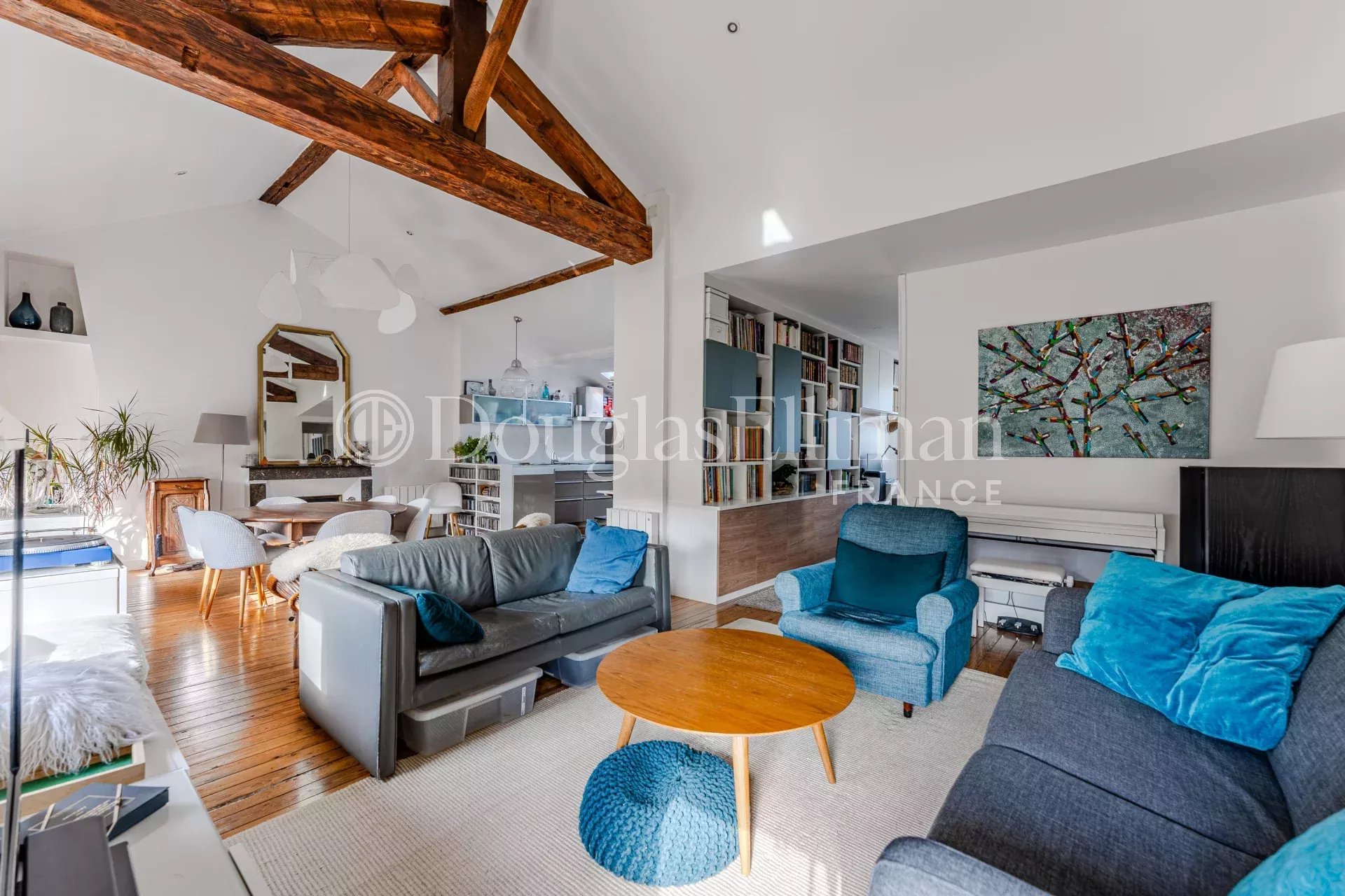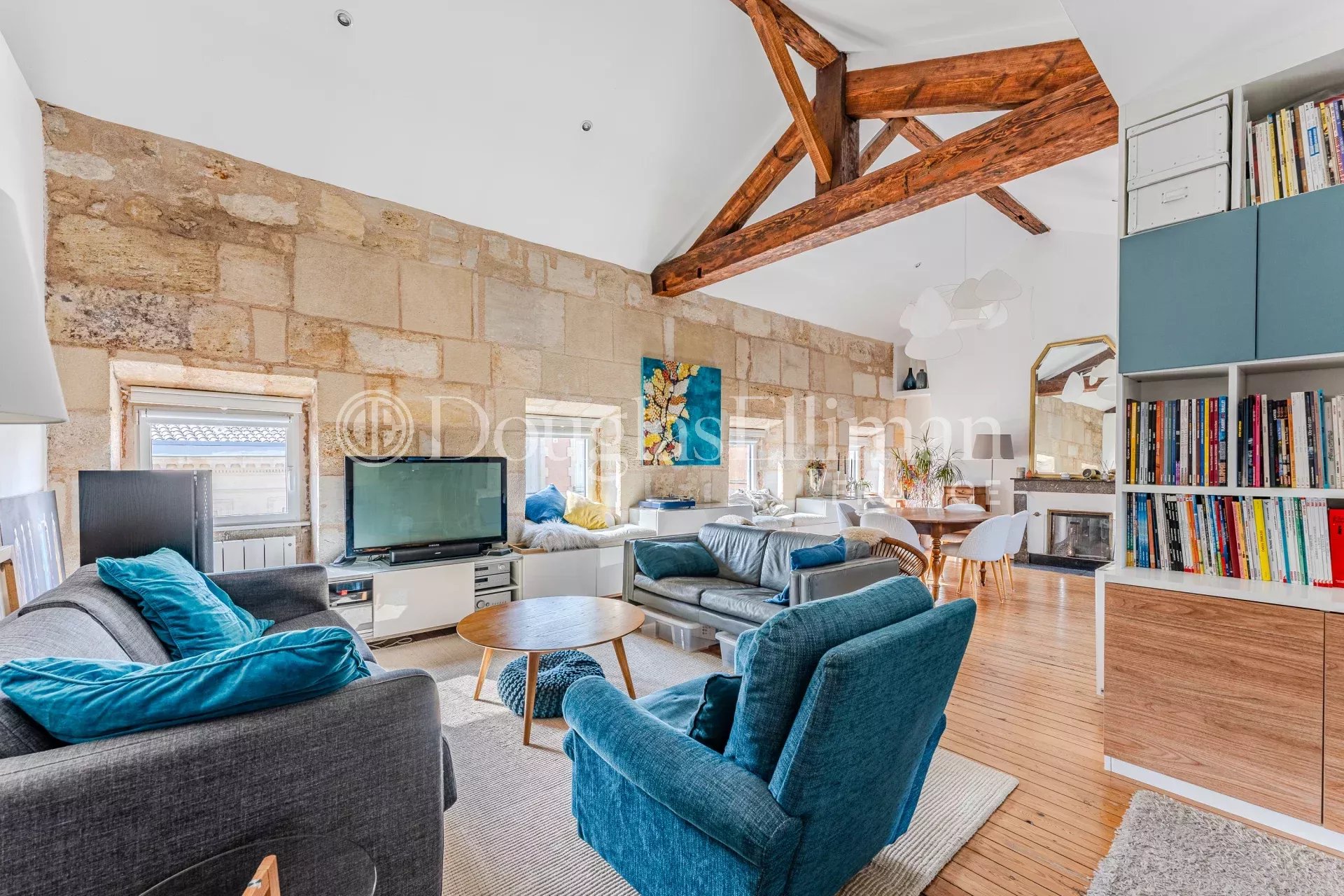Situé au dernier étage d’un magnifique immeuble en pierre du XIXe siècle, ce bien d’exception mêle caractère et élégance. Avec 83 m² Carrez et 117 m² au sol, cet appartement lumineux séduit par son atmosphère chaleureuse et son cachet unique.