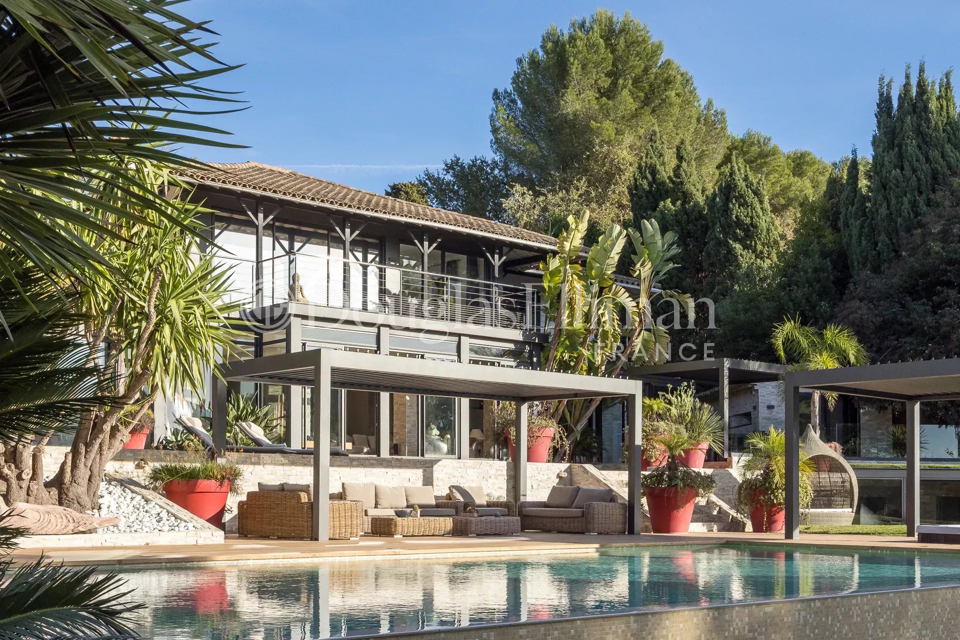 Elle offre de très beaux volumes et se compose d'une vaste entrée, d'un magnifique séjour avec salle a manger donnant sur une large terrasse, d'une cuisine entièrement équipée, 6 chambres dont 2 indépendantes avec salle de douche. Vous profiterez du soleil tout au long de la journée du fait de son exposition sud-ouest.