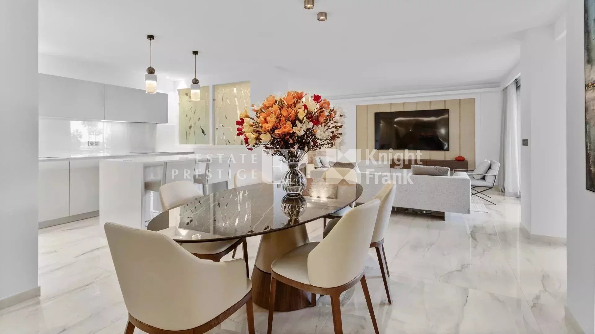 Au cœur de la célèbre Croisette, découvrez ce somptueux appartement 3 pièces de 127 m2 entièrement rénové, offrant un cadre de vie luxueux et une décoration élégante.