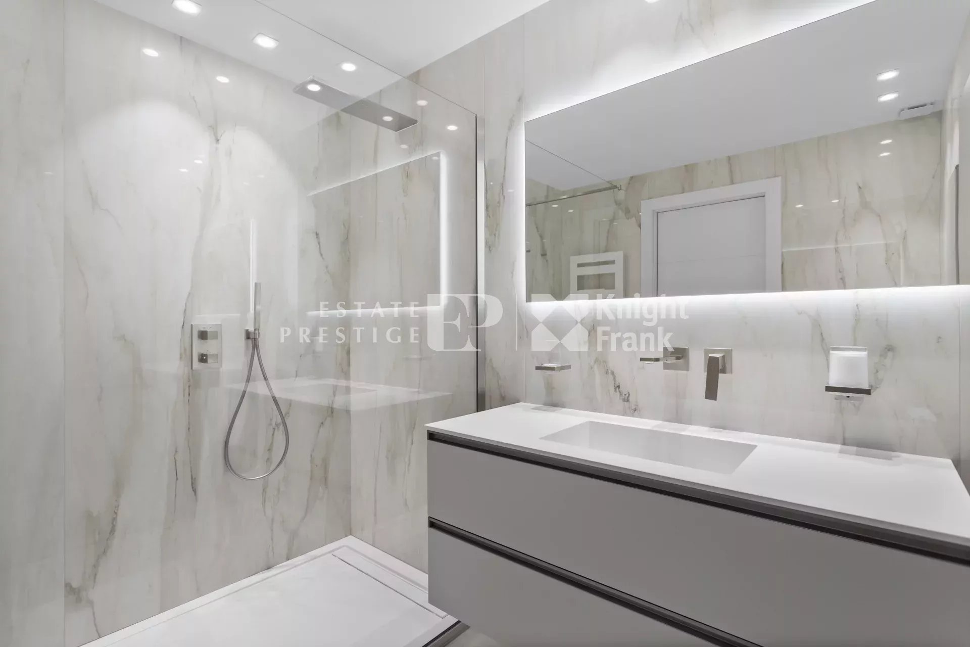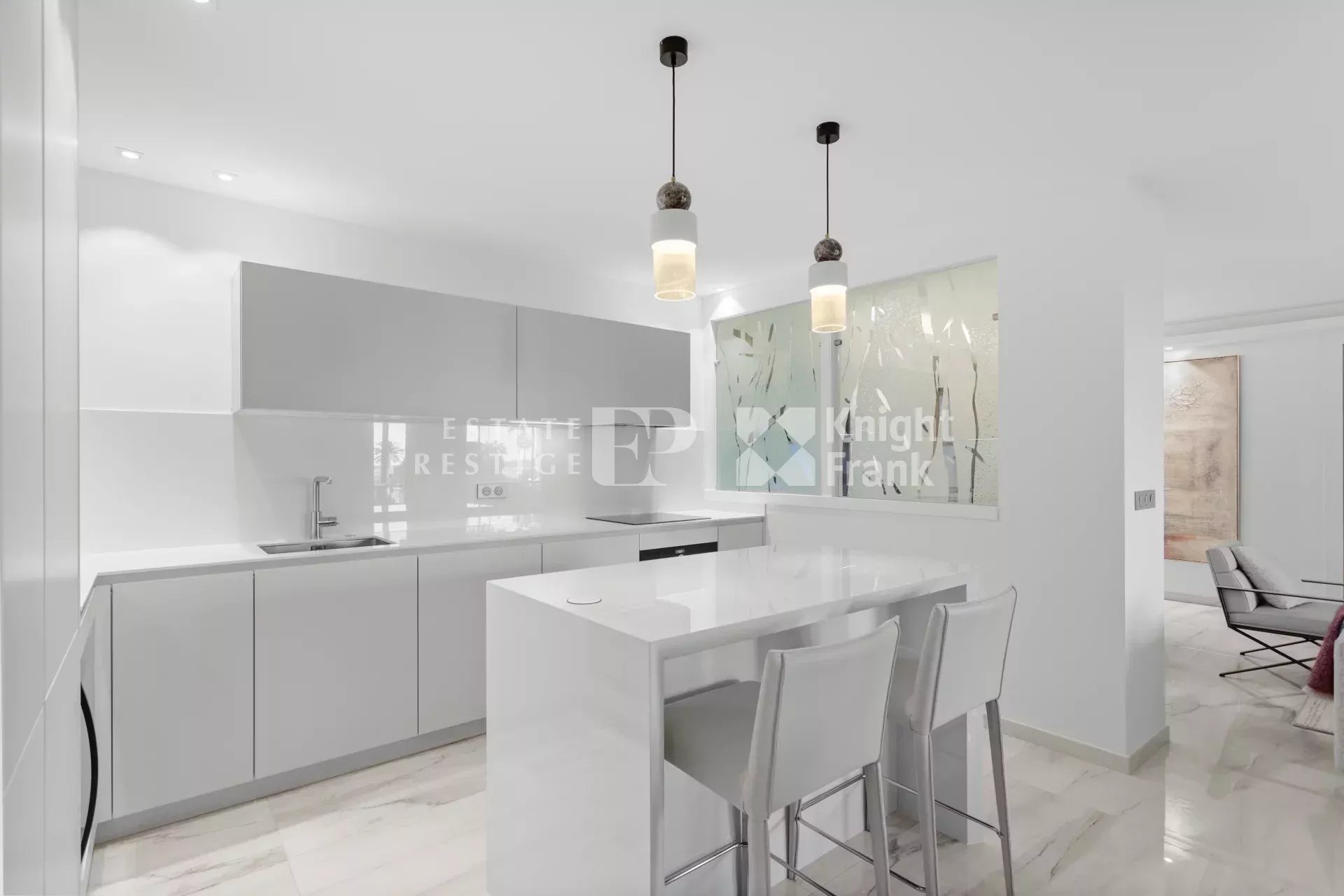 Dès l’entrée, l’atmosphère raffinée et contemporaine séduit par son harmonie et son confort. Le séjour, spacieux et baigné de lumière, s’ouvre sur une magnifique terrasse offrant une vue imprenable sur les jardins et la mer Méditerranée. La cuisine, moderne et entièrement équipée, s’intègre parfaitement à l’espace de vie pour une convivialité absolue.