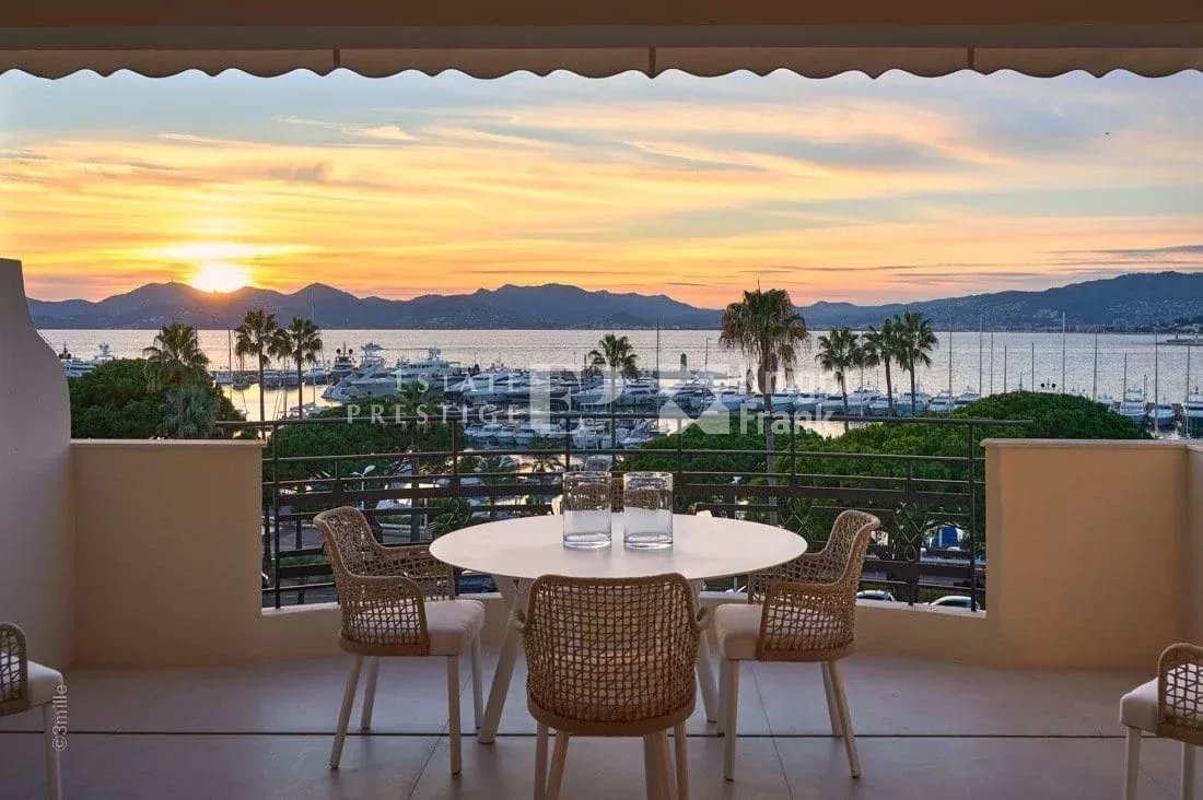 Idéalement situé sur la célèbre Croisette, a proximité du Port Canto et du Palm Beach, en dernier étage d'une résidence de grand standing avec gardien et sécurisée 24/7, superbe appartement 3/4 pièces d'environ 118m2 entièrement rénové, offrant de luxueuses prestations et une vue extraordinaire sur la mer et les collines de l'Esterel.