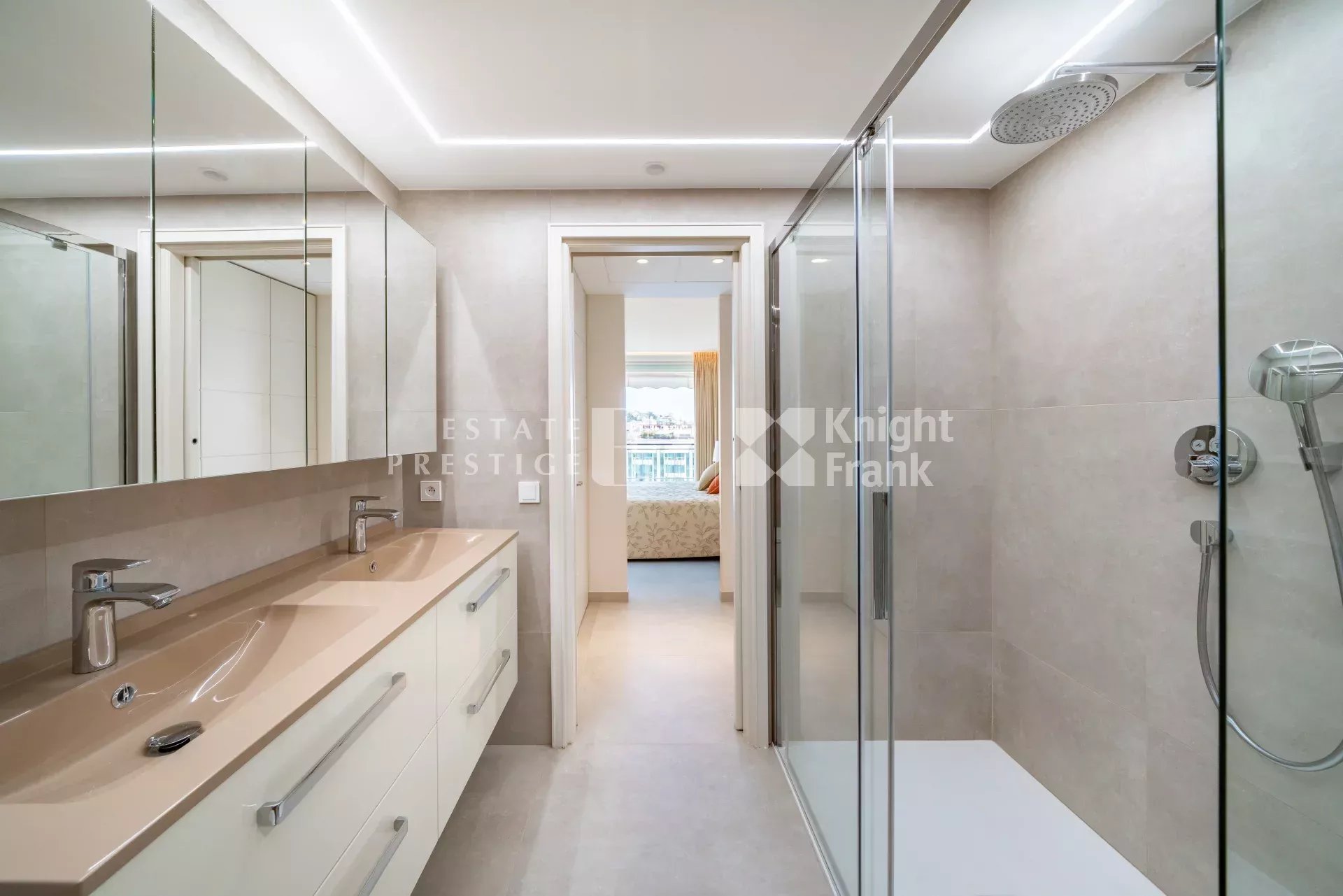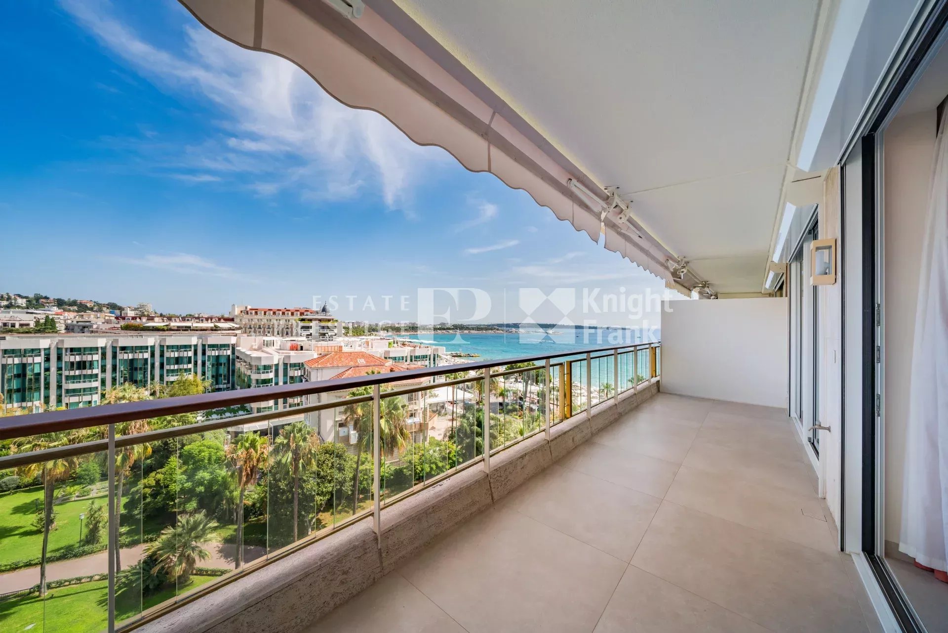 Au coeur de la Croisette, dans la prestigieuse résidence du Grand Hôtel, ce magnifique appartement de près de 94 m² très lumineux, luxueusement rénové, offre une superbe vue sur la Croisette, la Méditerranée et les jardins de la résidence.