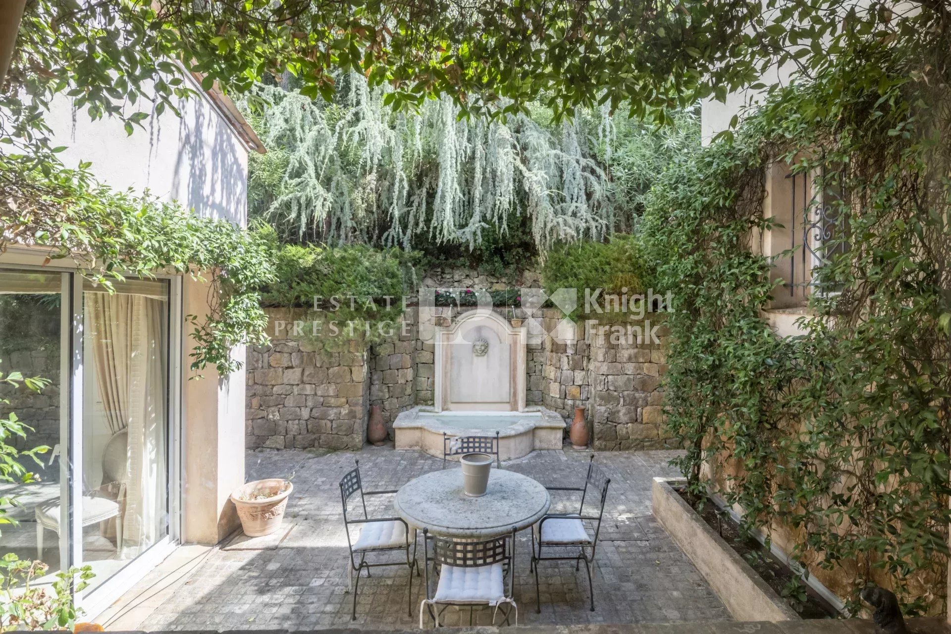 Dès l'entrée, vous serez charmé par la vue d'un joli patio puis du vaste salon ouvrant sur une belle terrasse et sur l'espace piscine. La suite principale inondée de lumière, avec son dressing et sa salle de bain, bénéficie d'un accès direct au jardin.