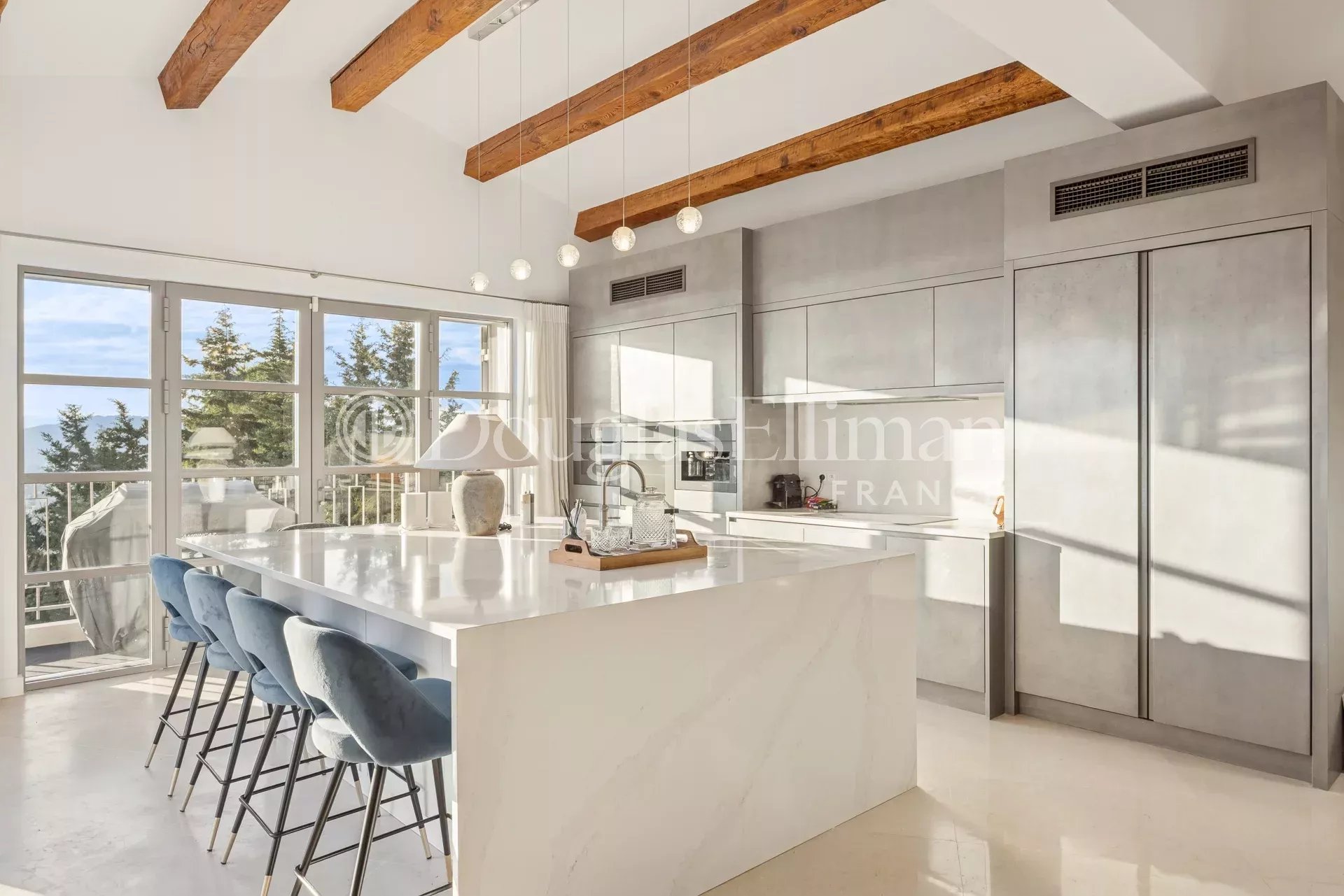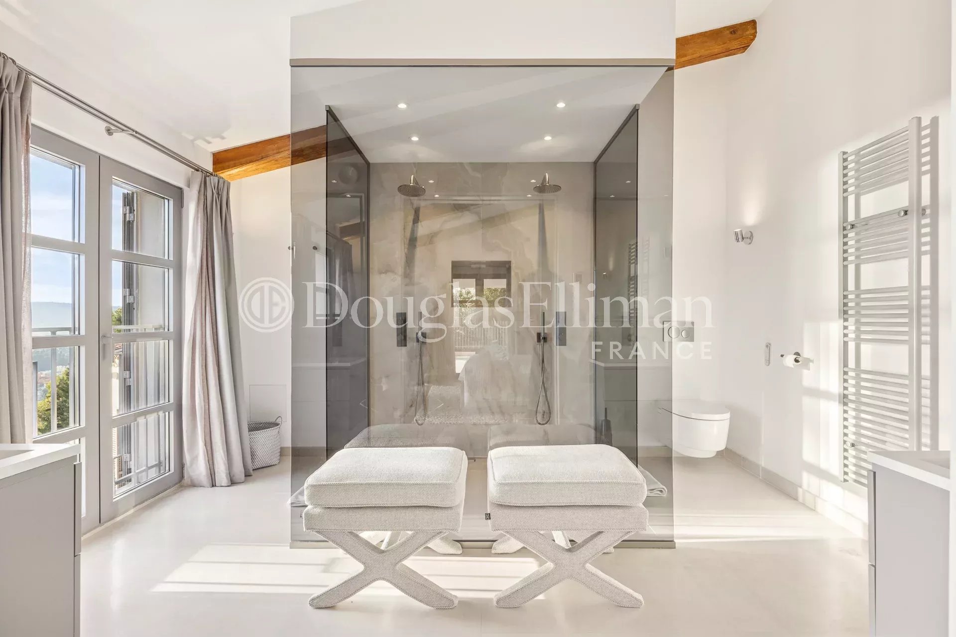 Orientée sud-ouest, sans aucun vis-à-vis et au calme absolu, elle est baignée de lumière tout au long de la journée dispose, sur près de 450 m², de volumes généreux, de vastes espaces de réception lumineux, de 5 chambres en suite avec dressings dont une chambre principale avec terrasse privative et d’une salle de sport.