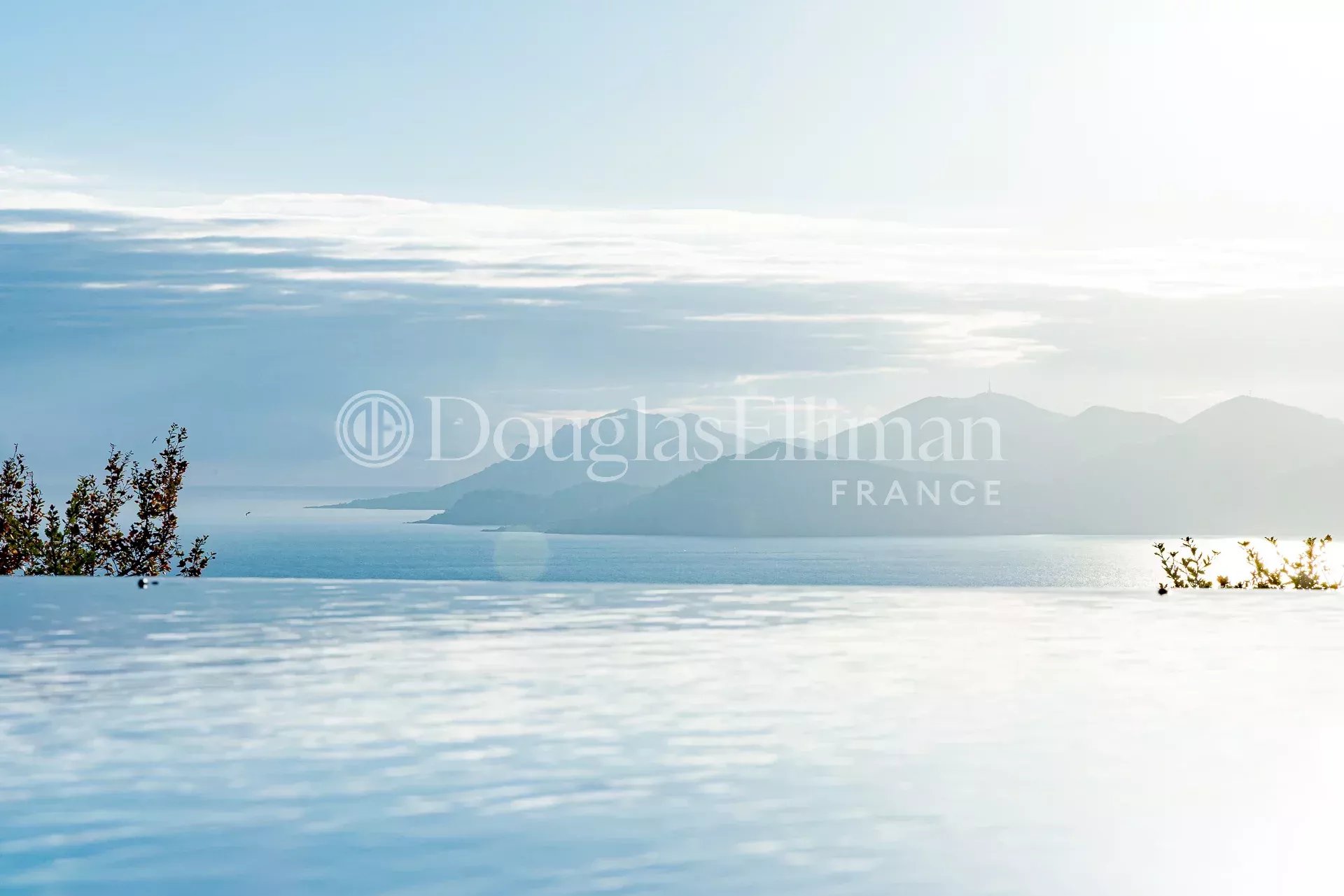 Elle béneficie d’un terrain paysager de près de 2 300 m² avec piscine à débordement et pool house, ainsi que d'une vue mer a couper le souffle depuis toutes les pièces de la villa.