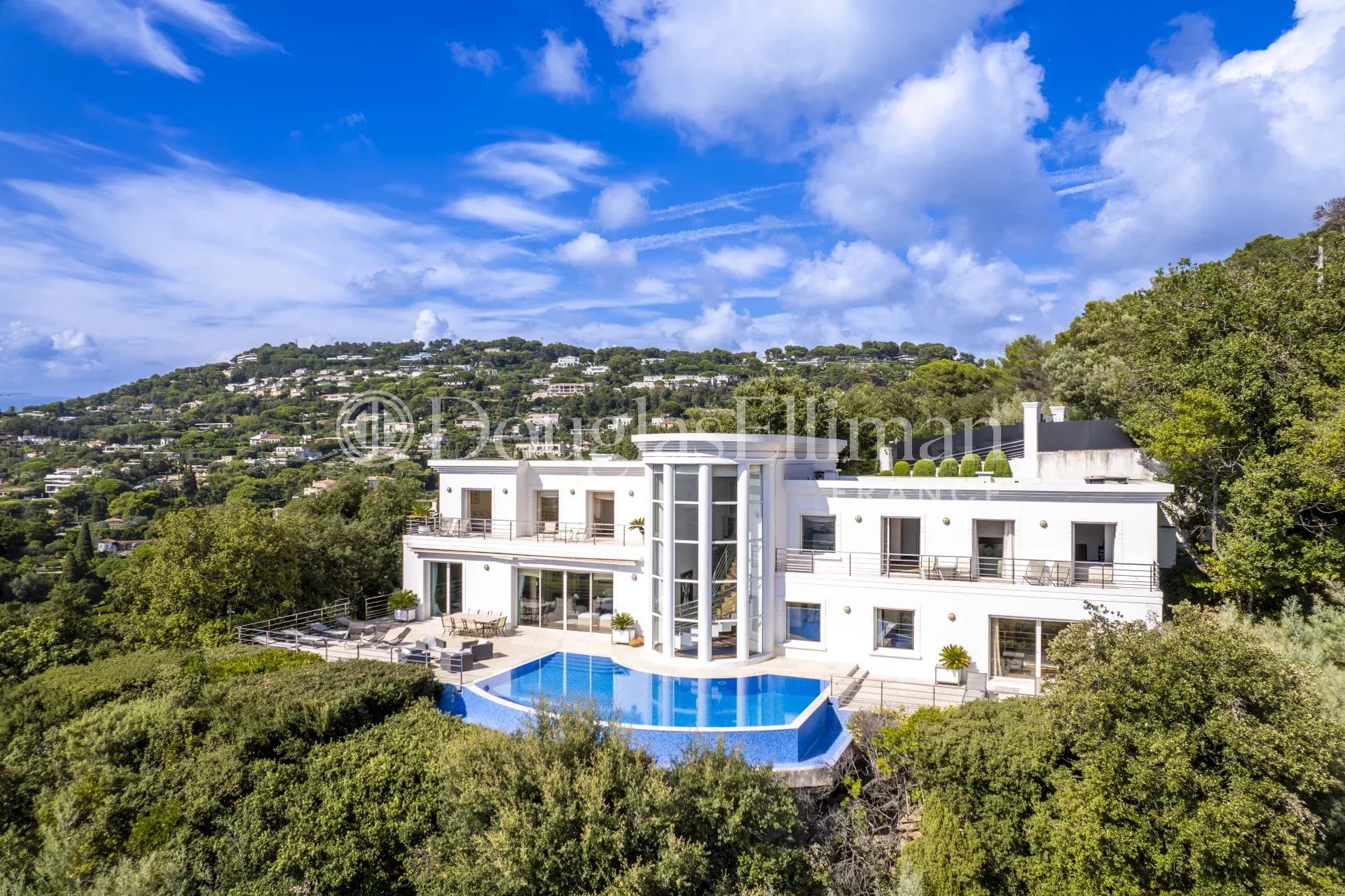Exclusivité. Idéalement située au cœur du quartier le plus prisé de La Californie, en position dominante, cette superbe propriété de style Art Déco offre un panorama à couper le souffle sur la Baie de Cannes et le massif de l’Estérel.
