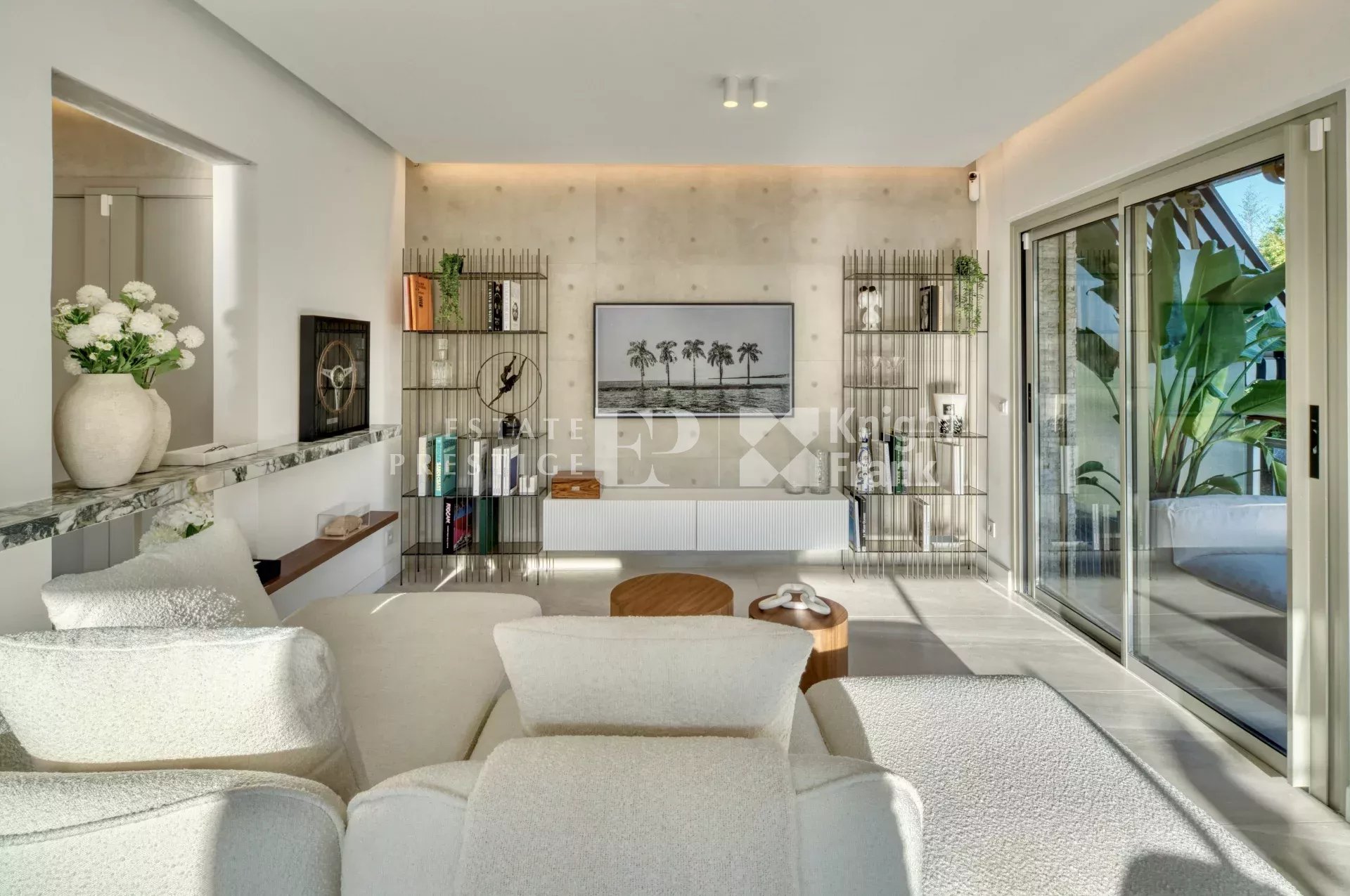 Nichée au sein d'une petite copropriété de standing, cette propriété offre un cadre de vie élégant et confortable. Dès l'entrée, vous serez accueilli par un hall desservant une vaste pièce à vivre baignée de lumière naturelle, avec une cuisine ouverte entièrement équipée, pensée dans un esprit contemporain et fonctionnel. Cette pièce principale s’ouvre sur une splendide terrasse d’angle de 21 m², idéale pour profiter des beaux jours en toute tranquillité.