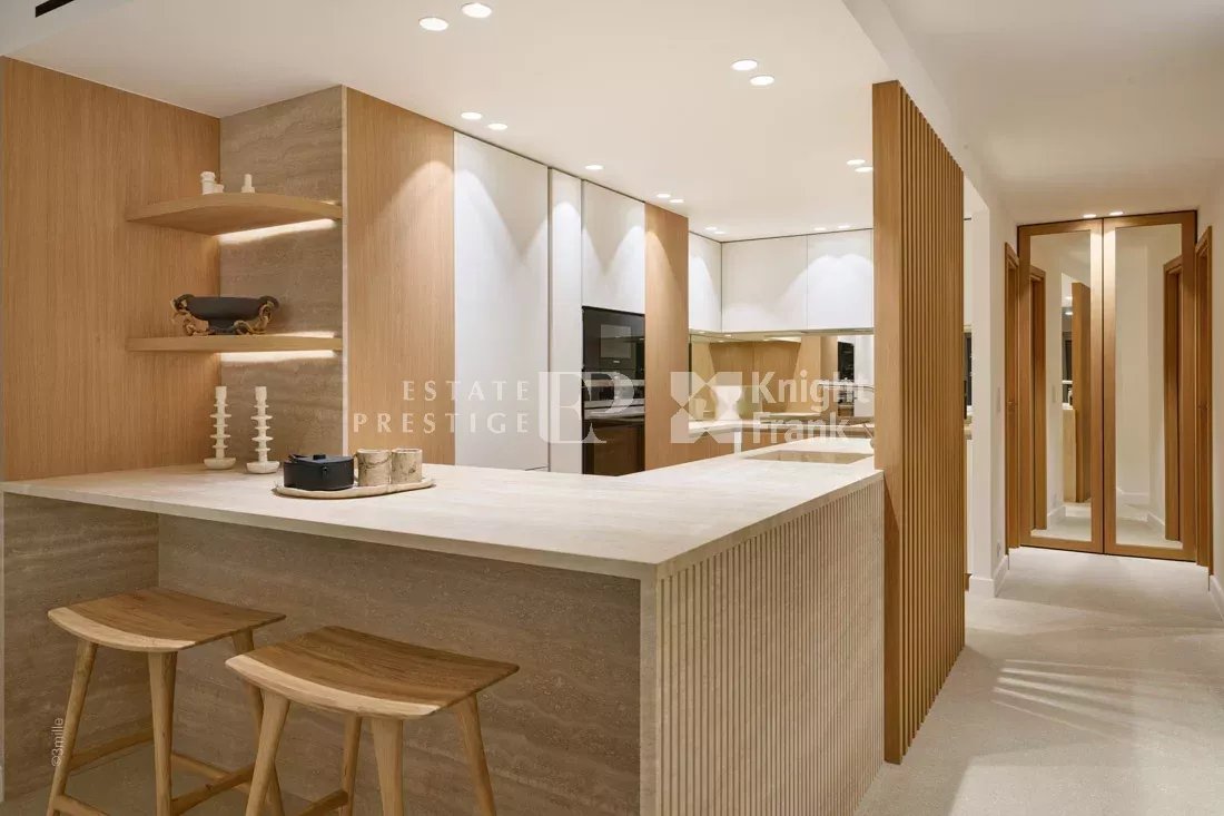 Situé dans le secteur très prisé du Palm Beach, en front de mer face aux plages du Mouré Rouge, sublime appartement 4 pièces traversant au dernier étage offrant une merveilleuse vue sur la mer, les Iles de Lérins et le Cap d'Antibes.