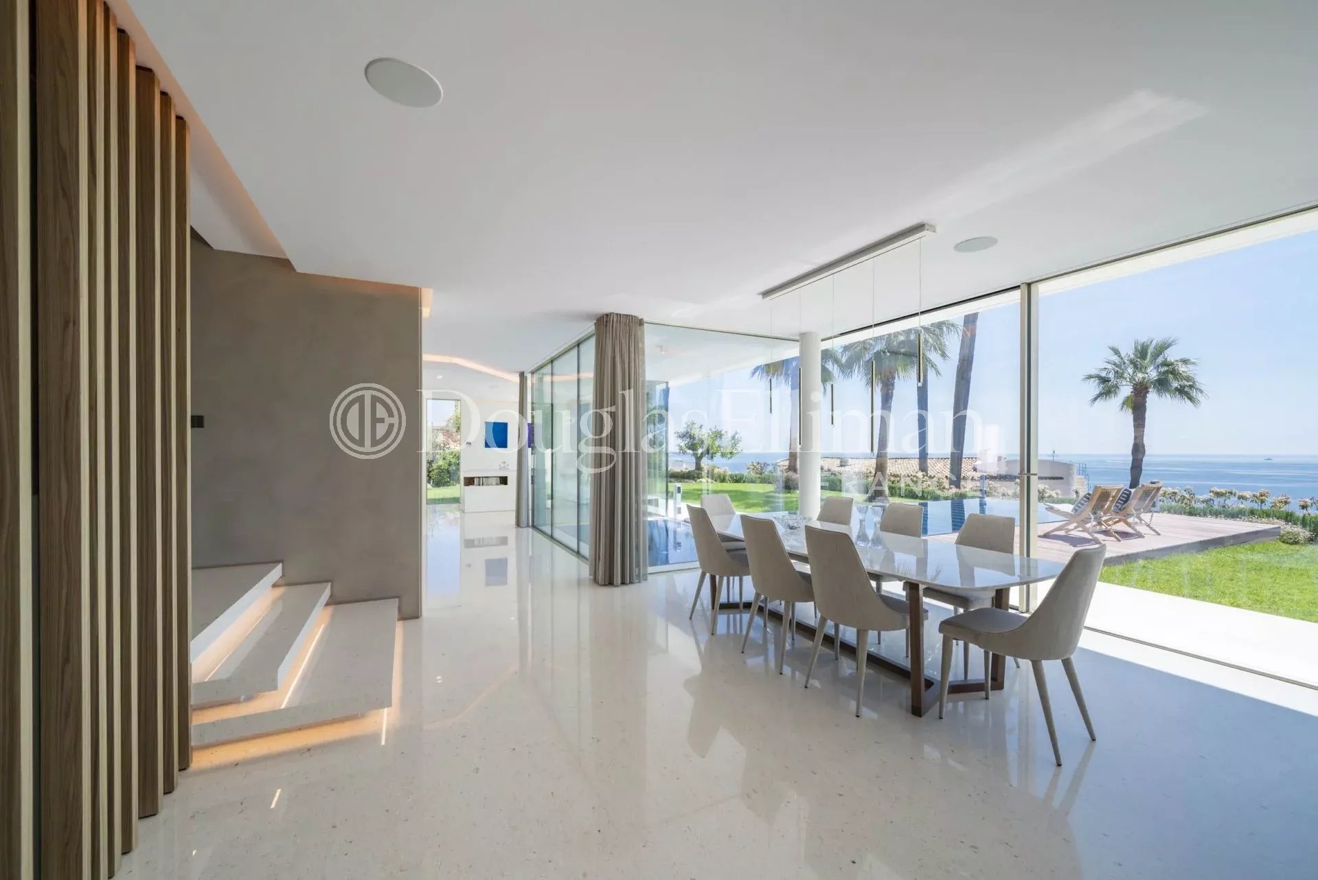 Sur près de 550 m² de superficie totale, elle dispose d’un hall avec une impressionnante fenêtre SkyDome qui offre un superbe panorama sur la piscine, le jardin et la mer en prolongement. Un spacieux salon, une salle à manger, une cuisine ouverte avec cuisine traditionnelle attenante, s’ouvrent sur les vastes terrasses entourant la villa. Elle compte aussi, 5 chambres ensuite avec vue dont une élégante chambre principale avec accès à une large terrasse au niveau supérieur.