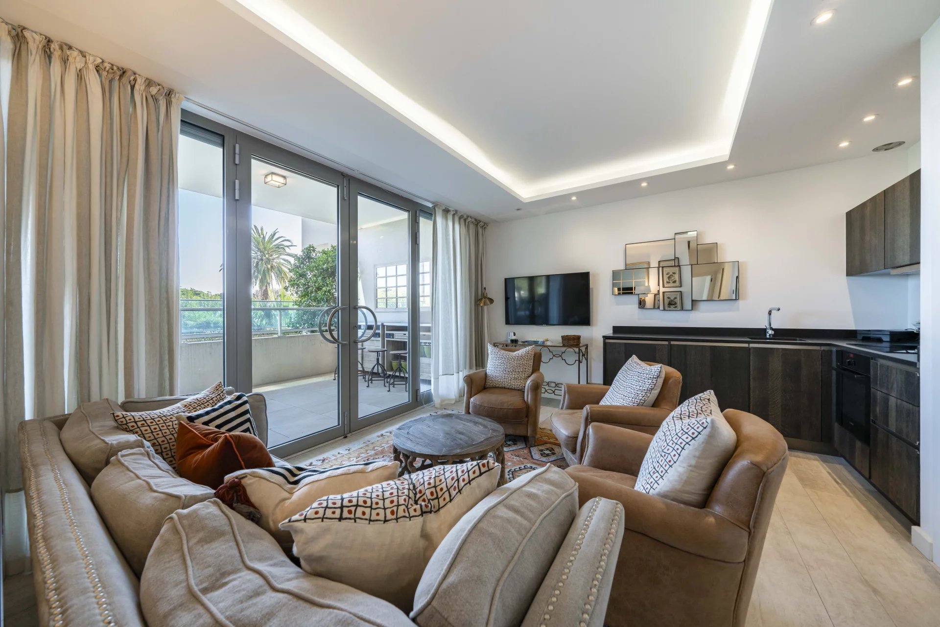 Cet appartement du Cap d'Antibes offre un luxe contemporain avec ses deux chambres à coucher en-suite, chacune s'ouvrant sur des terrasses. La vue sur la mer depuis l'une des terrasses ajoute à l'attrait de l'ensemble, créant un cadre serein et pittoresque.