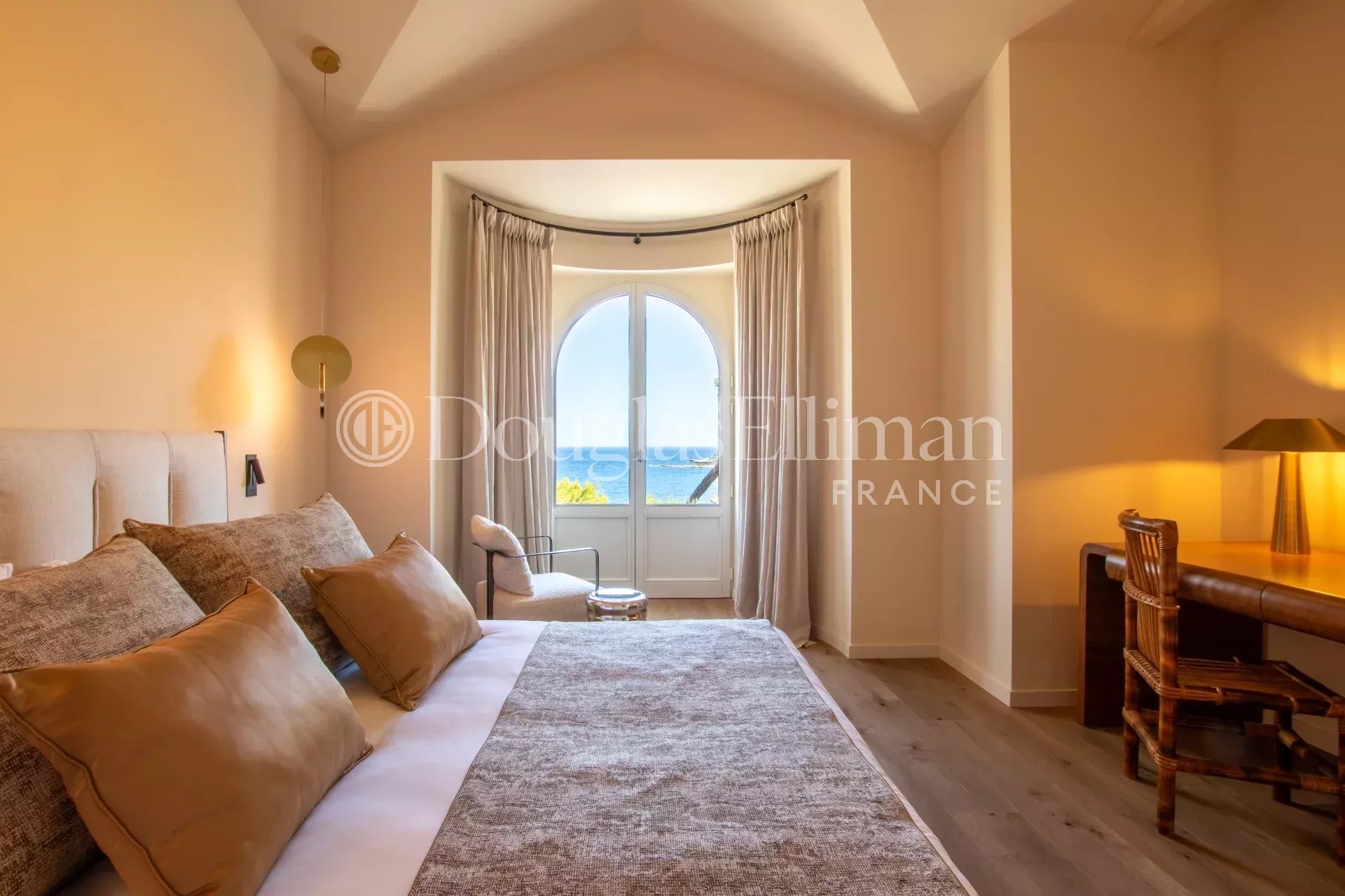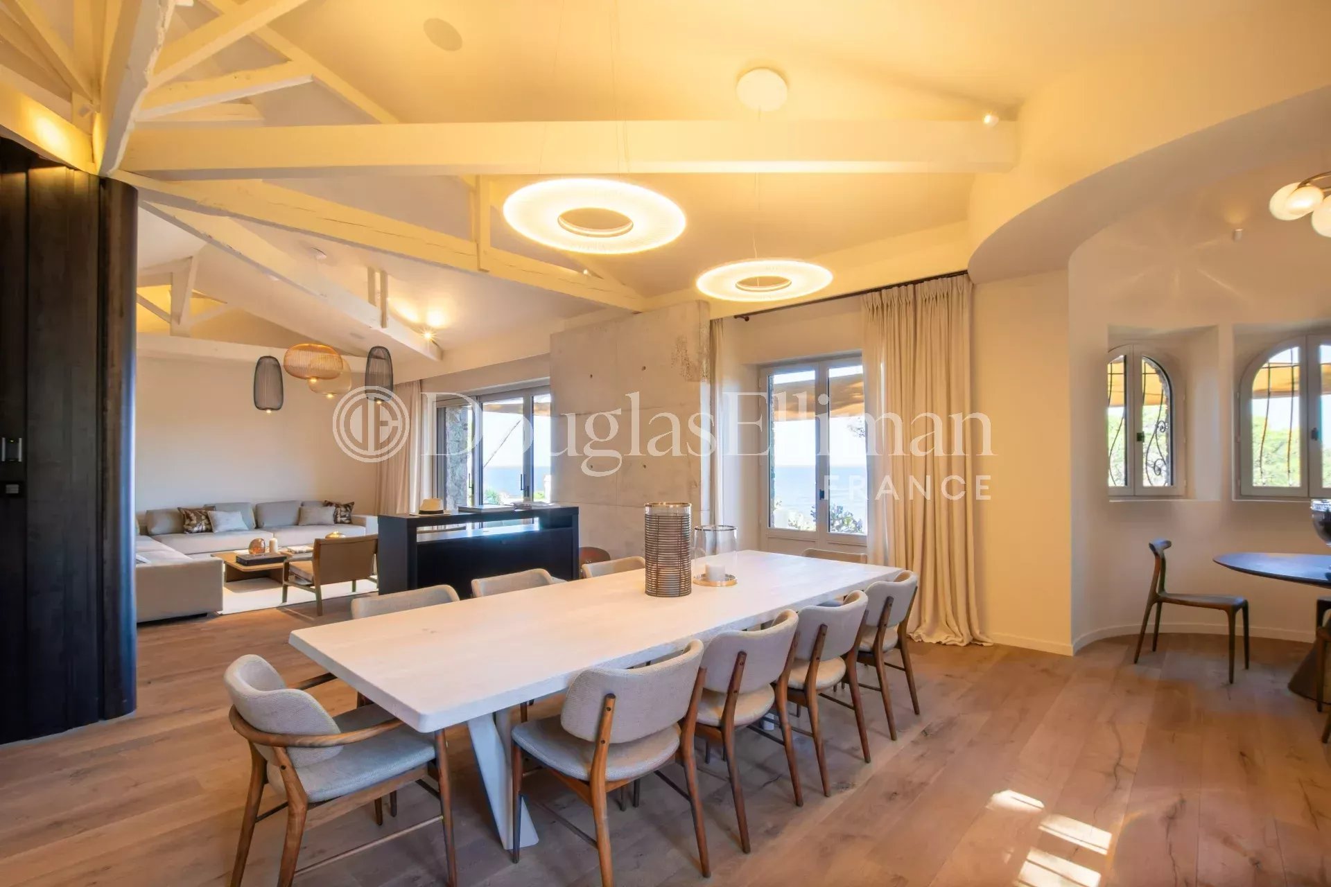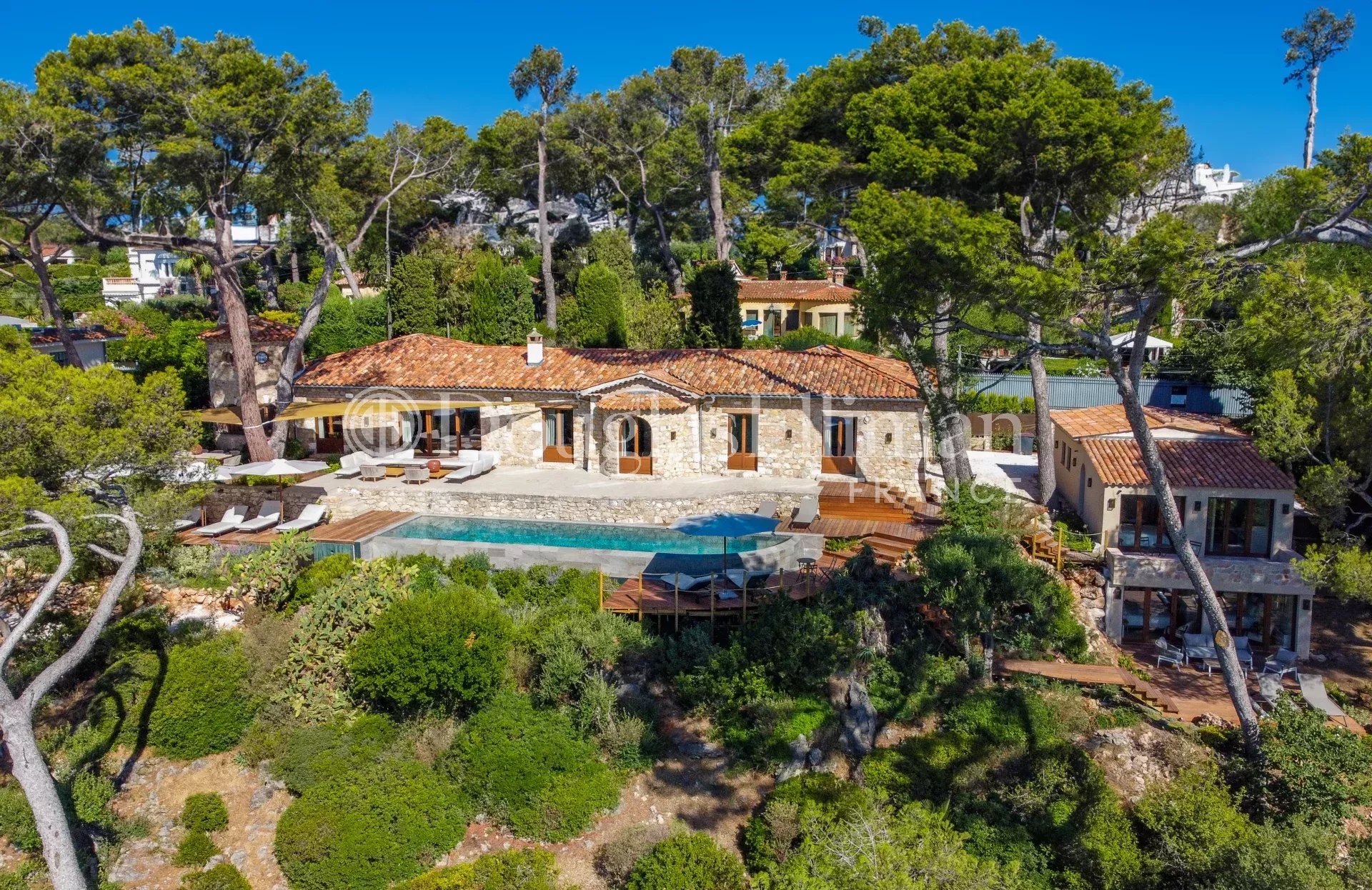 À Cap d’Antibes, à seulement quelques minutes à pied des mythiques plages de la Garoupe, cette propriété de prestige conjugue charme provençal et prestations haut de gamme. Édifiée en pierre, la bastide de plain‑pied d’environ 280 m² dévoile de vastes réceptions baignées de lumière : entrée élégante, salon avec cheminée contemplant la vue mer, salle à manger conviviale et cuisine équipée ouvrant sur une terrasse ombragée. Côté nuit, quatre suites spacieuses bénéficient chacune de leur salle de bains ou douche privative et d’un accès direct au jardin.