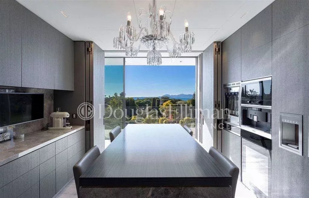 Offrant environ 635 m² de surface habitable, la villa comprend de généreux espaces de réception avec des portes coulissantes en verre du sol au plafond s'ouvrant sur les terrasses, créant ainsi une circulation fluide entre l'intérieur et l'extérieur et offrant une vue panoramique. La cuisine entièrement équipée avec des appareils électroménagers haut de gamme est conçue pour la vie quotidienne et les réceptions.