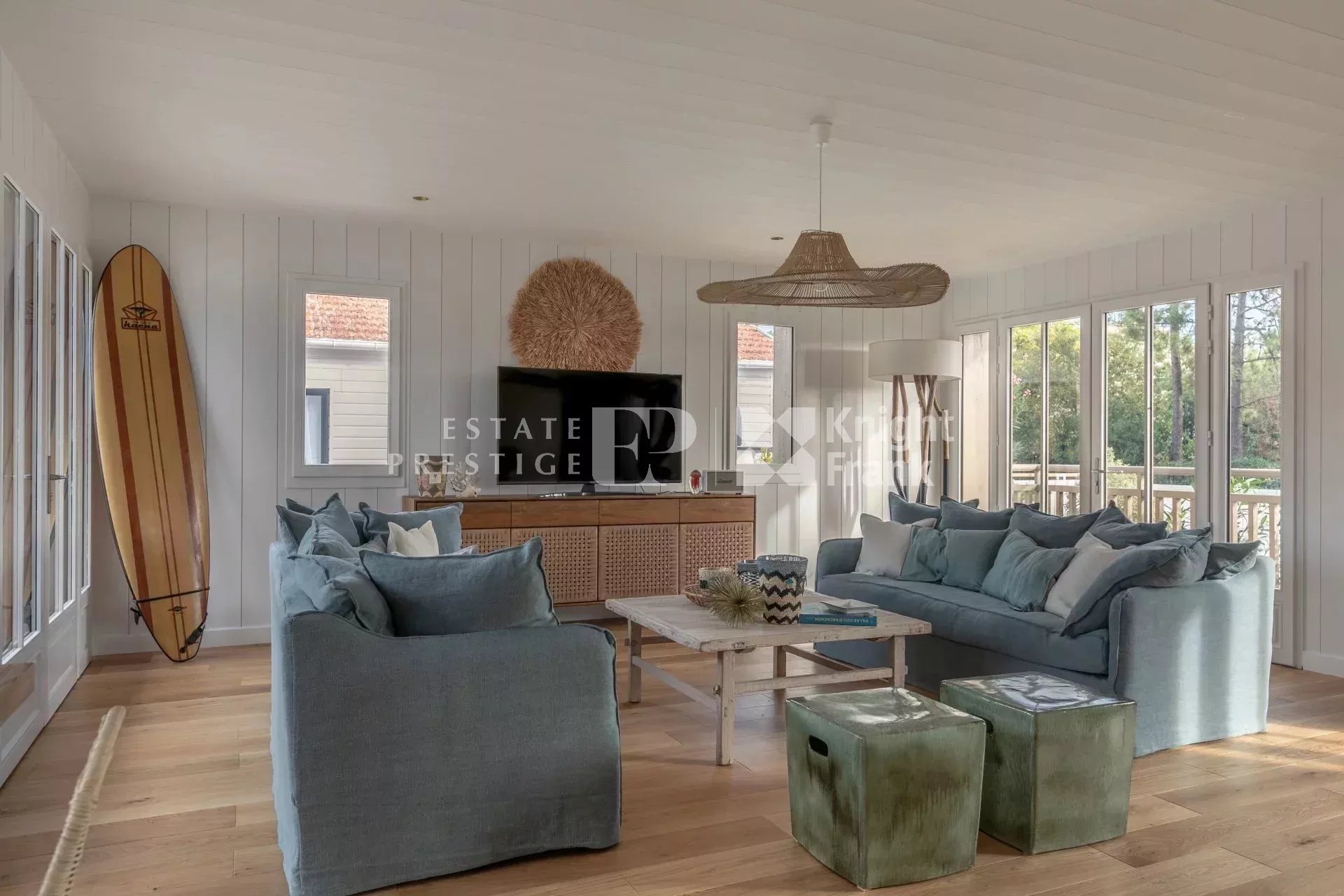 Au cœur du village, à proximité immédiate du marché du Cap Ferret, des restaurants et des commerces, cette villa permet de profiter pleinement du charme et de l’ambiance locale, tout en étant à seulement une minute à pied des places océanes et du Bassin.