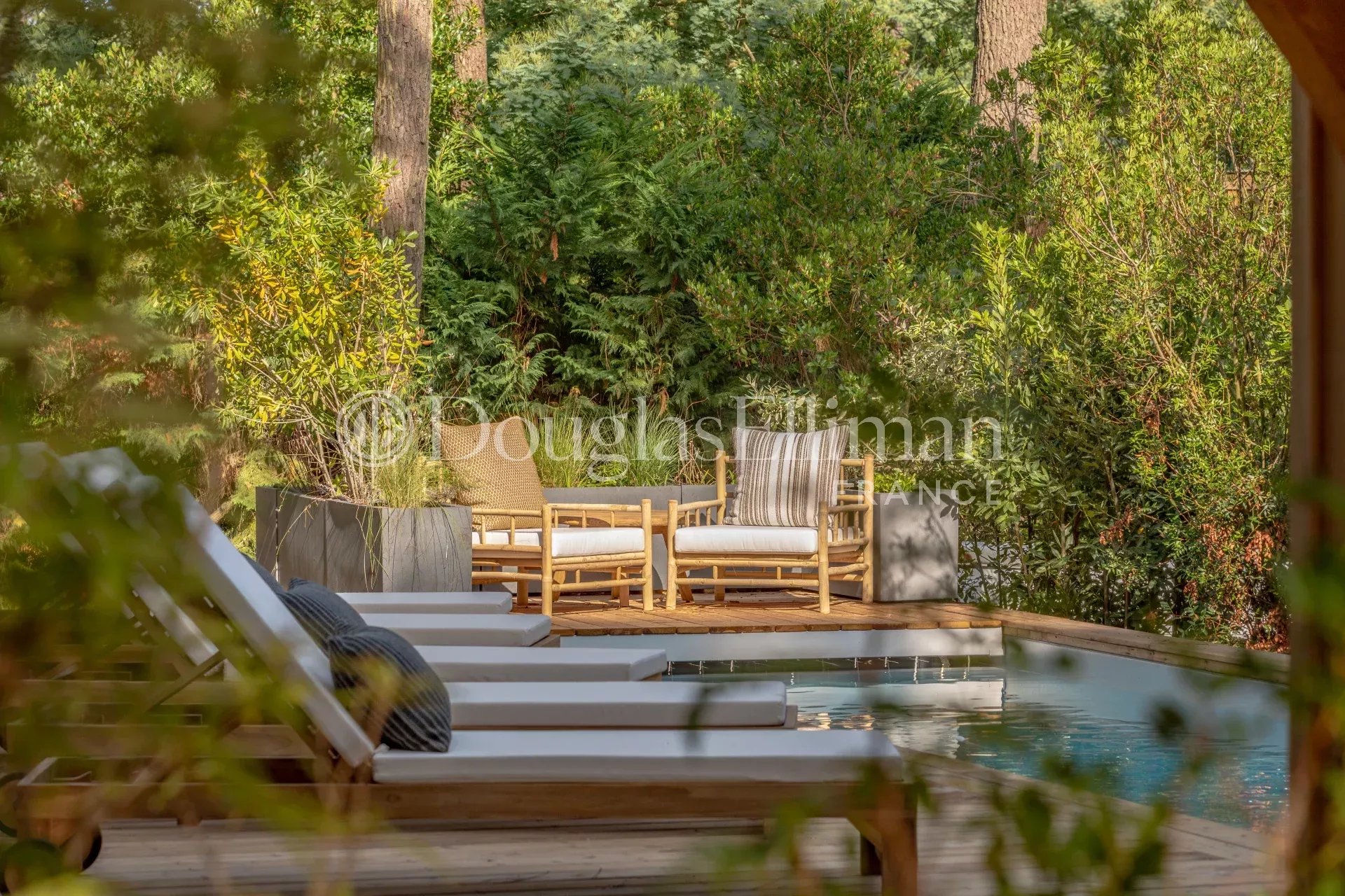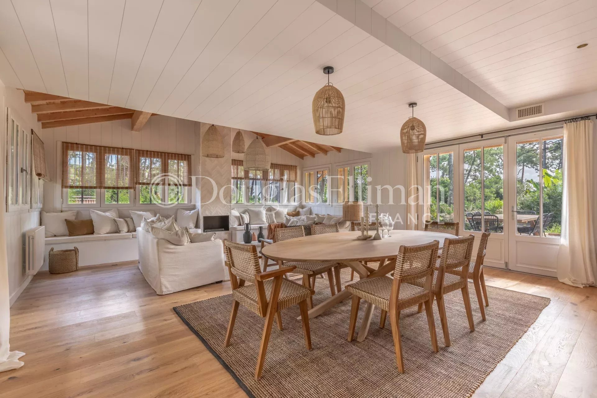Très belle villa de style Ferret-Capien entièrement rénovée, située dans le quartier recherché des Américains. À seulement 50 mètres de la plus belle plage du Cap Ferret, cette propriété offre un cadre privilégié où tout se fait à pied : plages, commerces et centre du village sont à proximité immédiate.