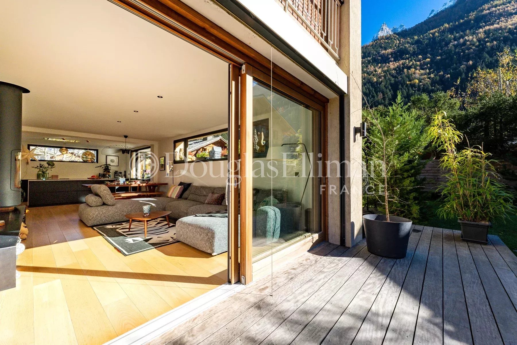 Un appartement de 4 chambres magnifiquement rénové dans le centre de Chamonix, situé dans plus de 500m² de jardins paysagers et de terrasses orientées sud.