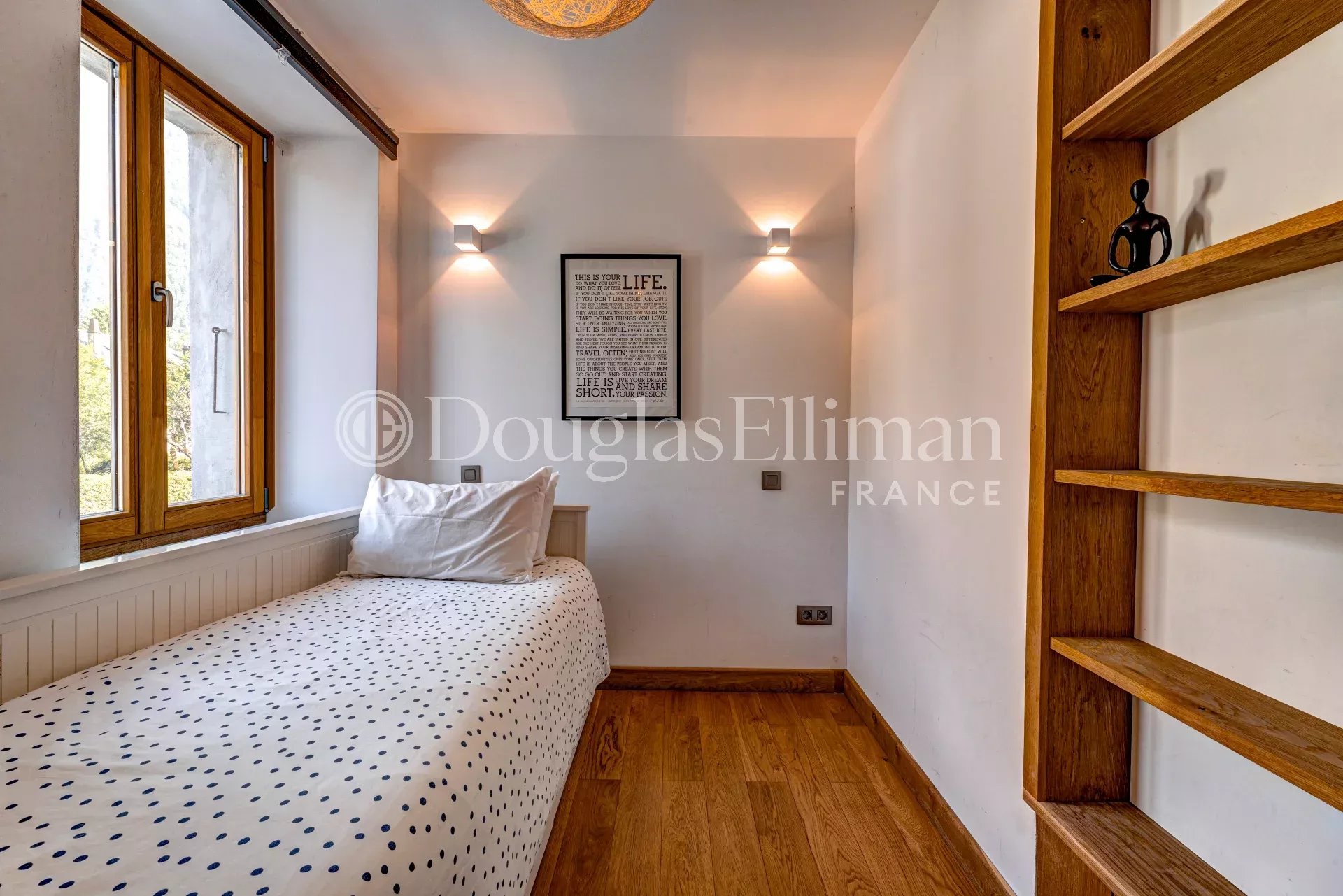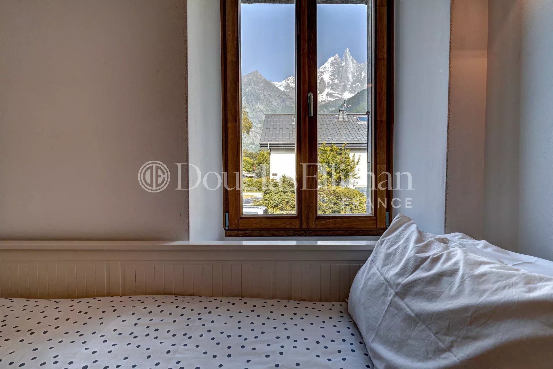 Situé au 1er étage d'une maison savoyarde traditionnelle datant de la fin du 18ème siècle, l'appartement dispose d'un espace de vie de bonne taille qui s'ouvre par des portes-fenêtres sur un petit balcon offrant une vue magnifique et ininterrompue sur les montagnes, y compris le Mont Blanc, orientées vers le sud. Le studio, qui ferait une parfaite suite parentale, bénéficie des mêmes vues et du même balcon, donnant sur un jardin partagé par les résidents de l'immeuble.