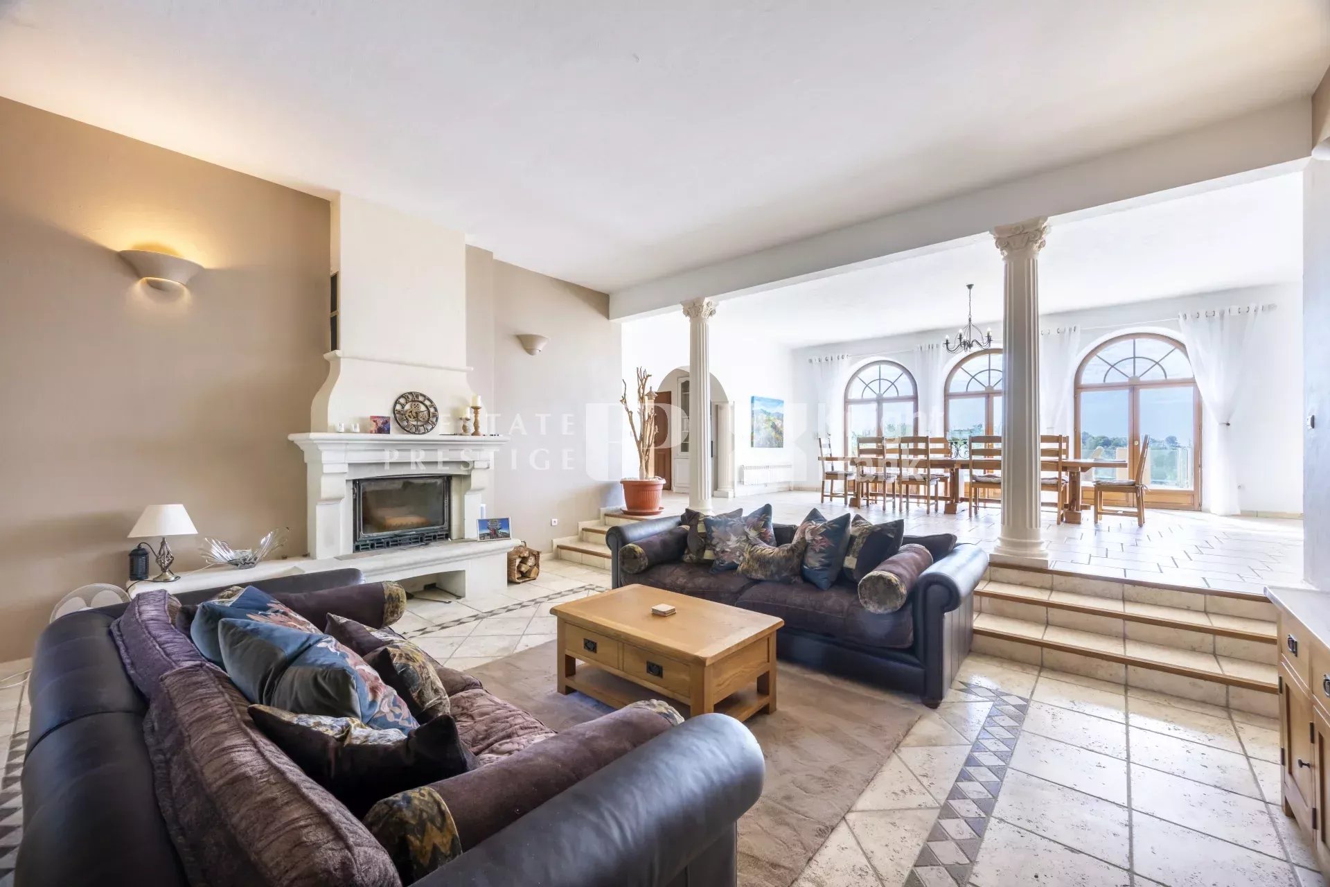 À l’intérieur, de généreux volumes et des finitions d’une grande qualité définissent les espaces de vie. Le spectaculaire salon cathédrale d’environ 80m², baigné de lumière naturelle, s’ouvre harmonieusement sur une vaste salle à manger donnant directement sur les terrasses, le jardin et la piscine — un cadre idéal pour profiter pleinement d’un art de vivre dedans-dehors.