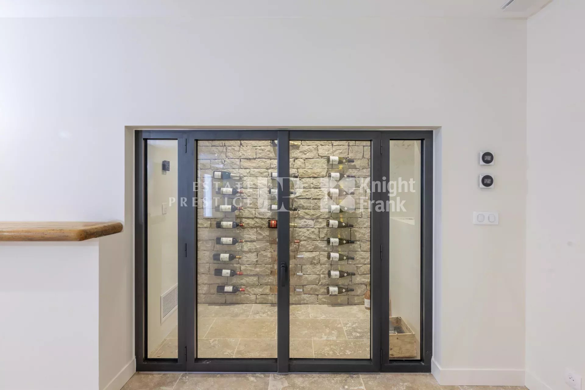 Le niveau inférieur du jardin propose un espace de vie supplémentaire parfait pour recevoir famille et amis, comprenant deux chambres ensuite, une salle de cinéma, une cave à vin, une cuisine d’été et une salle d’eau pour la piscine.