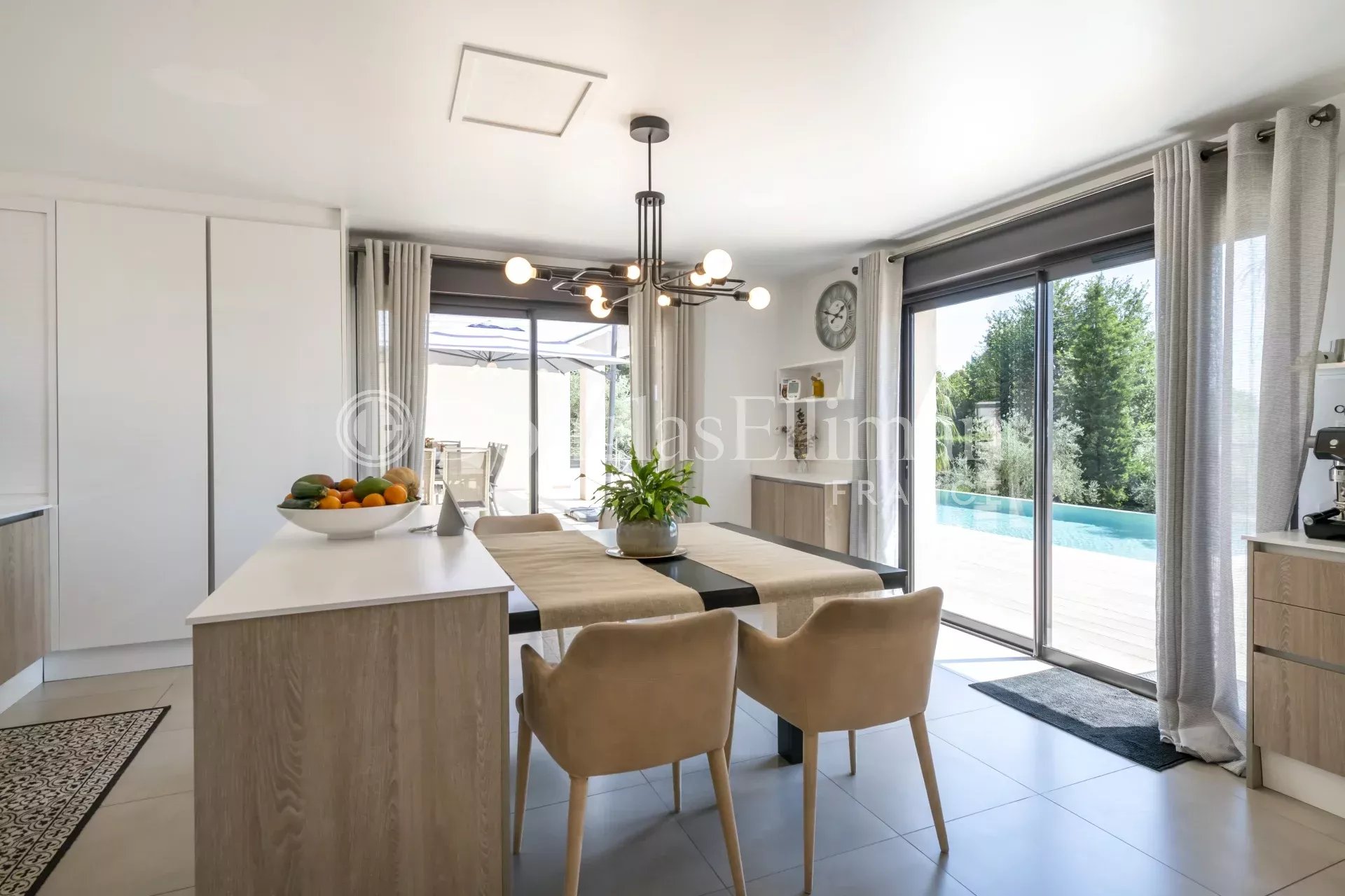 Avec ses 280 m², la villa s'ouvre sur un magnifique hall d'entrée menant à un vaste salon et salle à manger ouverts, prolongés par une cuisine lumineuse et raffinée. Toutes les pièces s'ouvrent directement sur un spacieux espace extérieur, aménagé en plusieurs zones alfresco, parfaites pour recevoir vos invités.