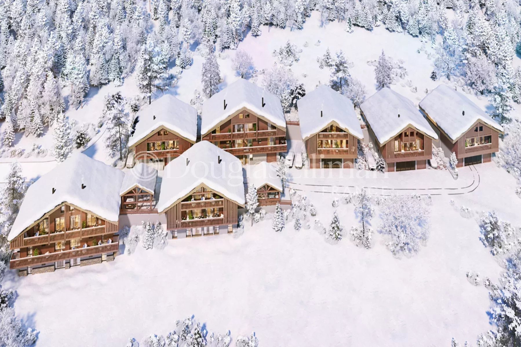 Les chalets ont été conçus pour maximiser la lumière et les vues panoramiques sur les montagnes depuis leur orientation sud. Chaque chalet dispose d'un espace bien-être/sauna, d'un local à skis et chaussures, d'une laverie, et d'un parking couvert ou d'un garage. Les propriétés seront entièrement équipées de parquet, de carrelage de grande dimension et de murs traditionnels "vieux bois" parmi des finitions modernes en plâtre. Construits selon les dernières réglementations thermiques (RT 2020), les chalets disposeront d'un chauffage par le sol via une pompe à chaleur individuelle.