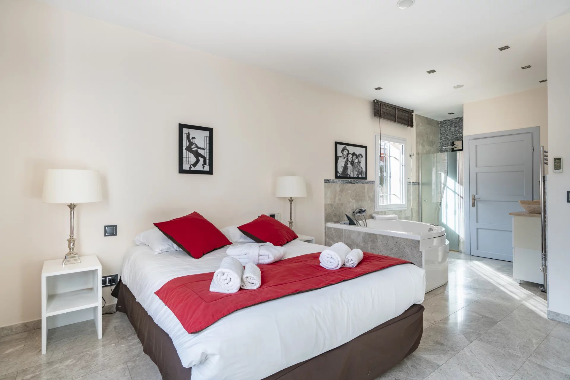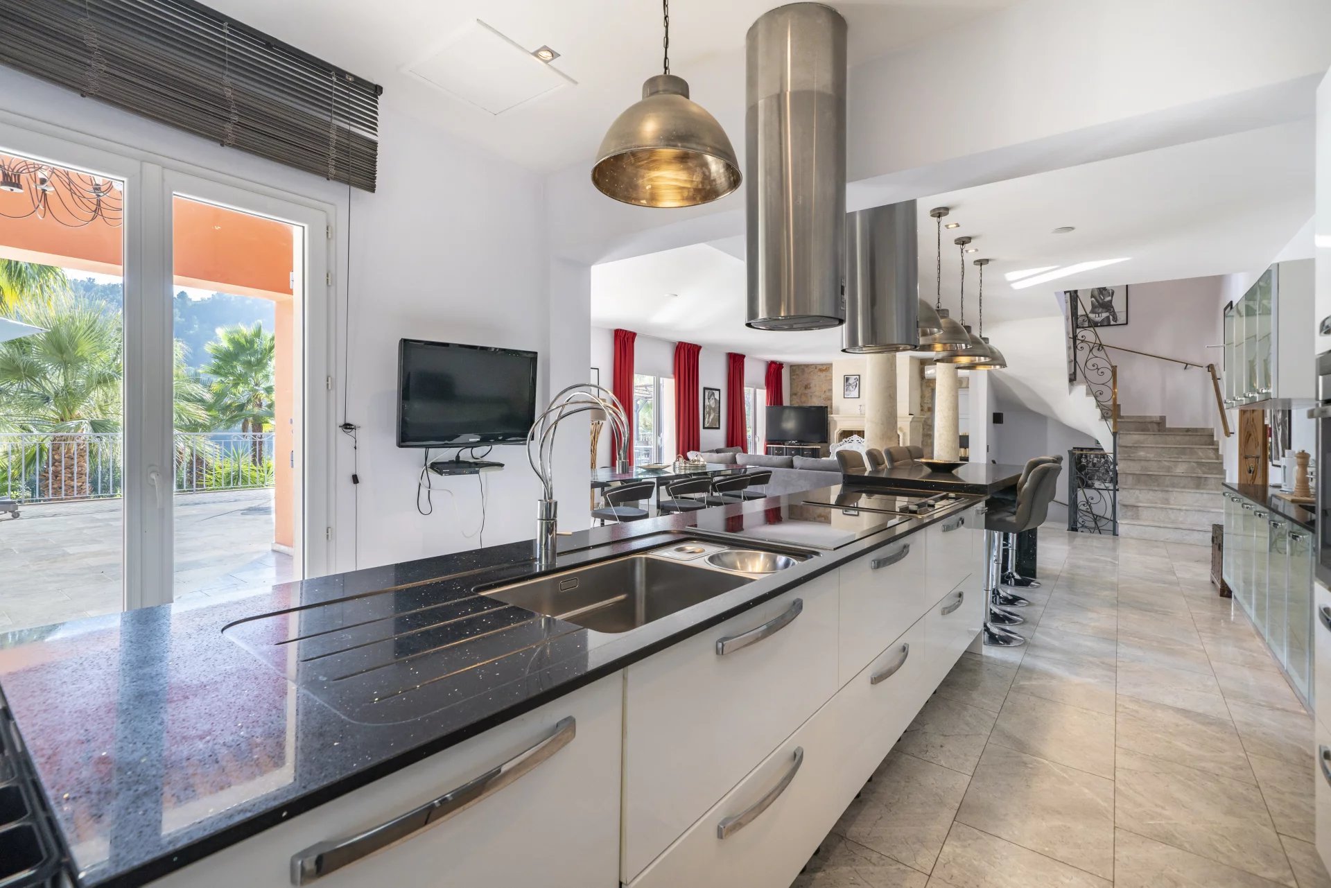 La villa de 420m2 offre des prestations haut de gamme et modernes, avec 7 chambres, 6 salles de bains, une salle de cinéma, une salle de gym, une piscine chauffée, un pool house, le tout sécurisé et entièrement climatisé. C'est un véritable havre de paix et de tranquillité.