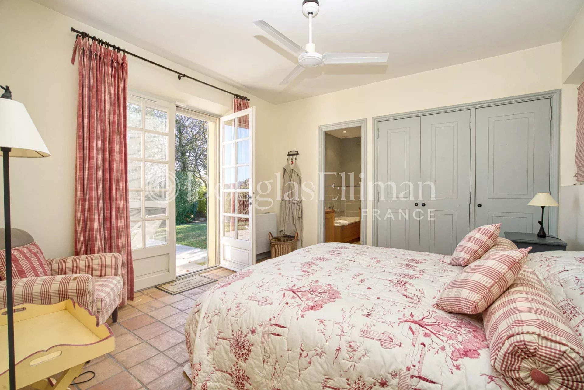 La maison d’amis, pleine de charme, dispose de trois chambres, de deux salles de bains, d’une cuisine, d’une salle à manger et d’un salon avec cheminée, idéale pour recevoir en toute indépendance.