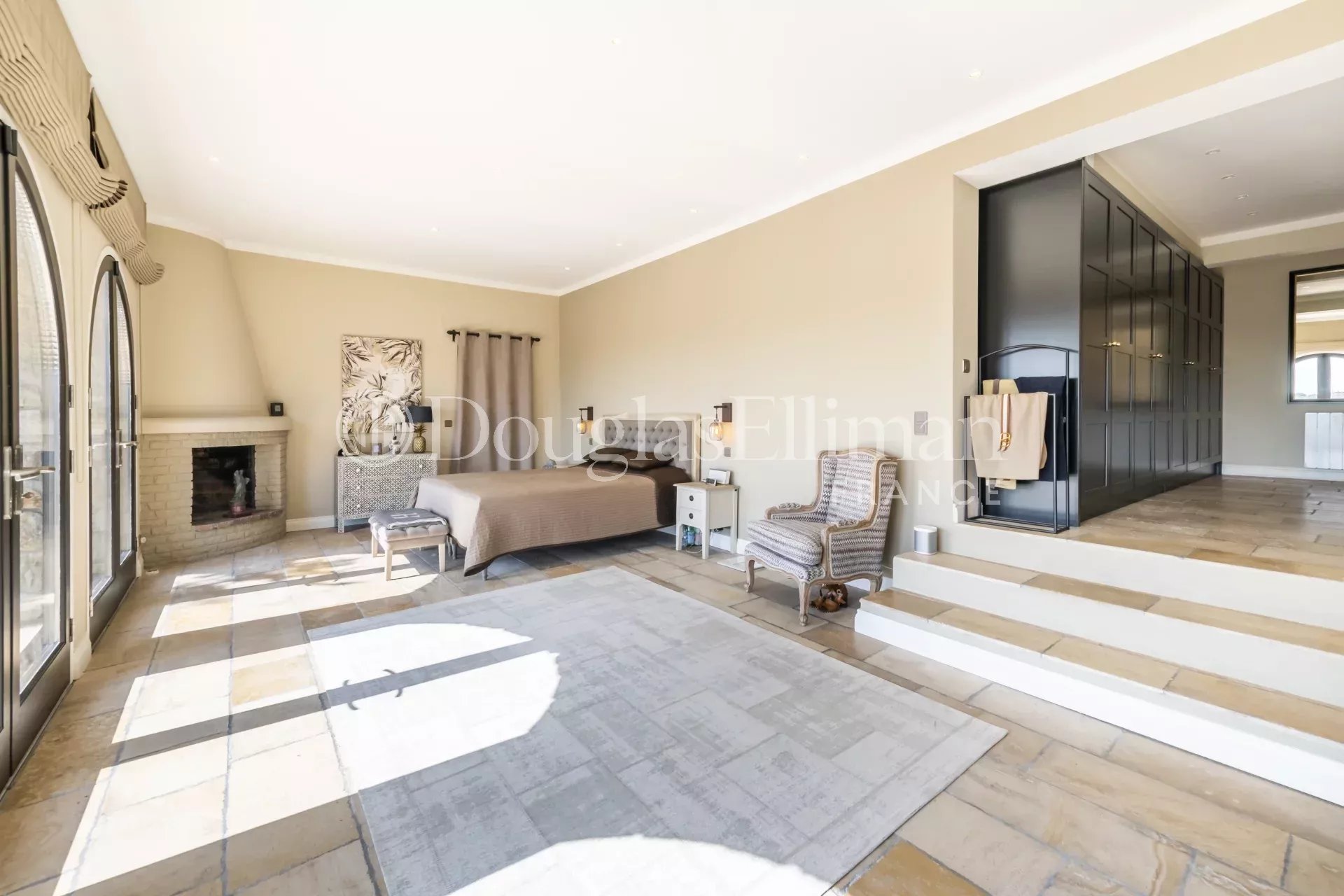 La maison dispose de 6 chambres spacieuses et 7 salles de bains luxueuses, dont une magnifique suite parentale dotée d'un dressing et d'une grande terrasse. La cuisine/salle à manger ouvre sur une belle terrasse extérieure avec vue panoramique jusqu’à la mer. Le premier étage comprend un grand salon ainsi qu’une salle de sport.