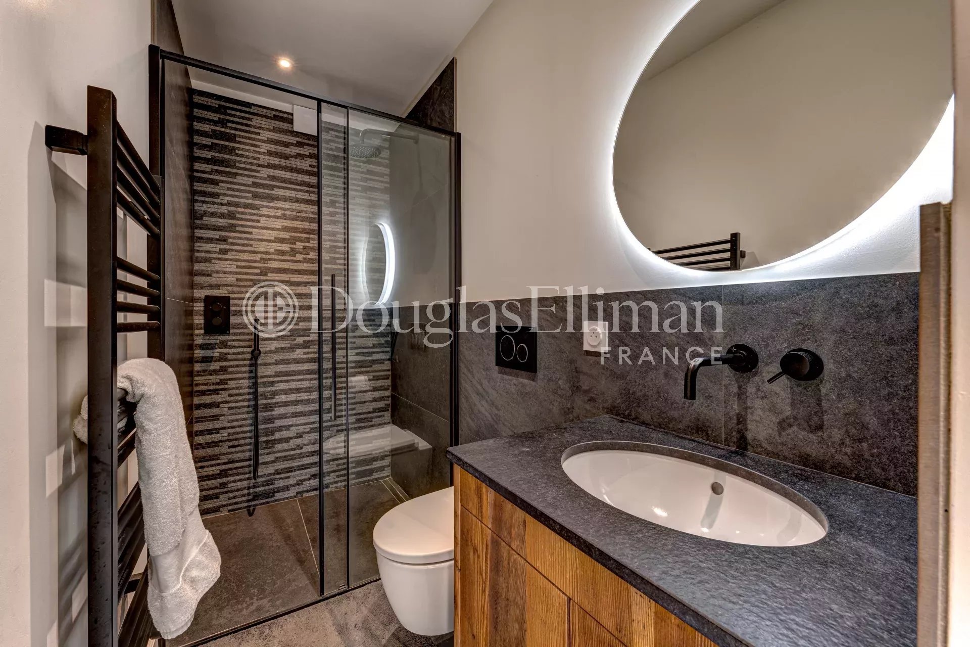 La propriété est agencée sur trois niveaux avec l'entrée, le salon/salle à manger et la cuisine sur mesure au rez-de-chaussée, qui s'ouvre sur la terrasse en pierre orientée sud et le grand jardin. Le premier étage dispose de trois chambres avec salle de bains attenante et d'un autre salon/espace TV. Le dernier étage est entièrement dédié à une somptueuse suite parentale de plus de 50m² avec dressing et salle de bains luxueuse.