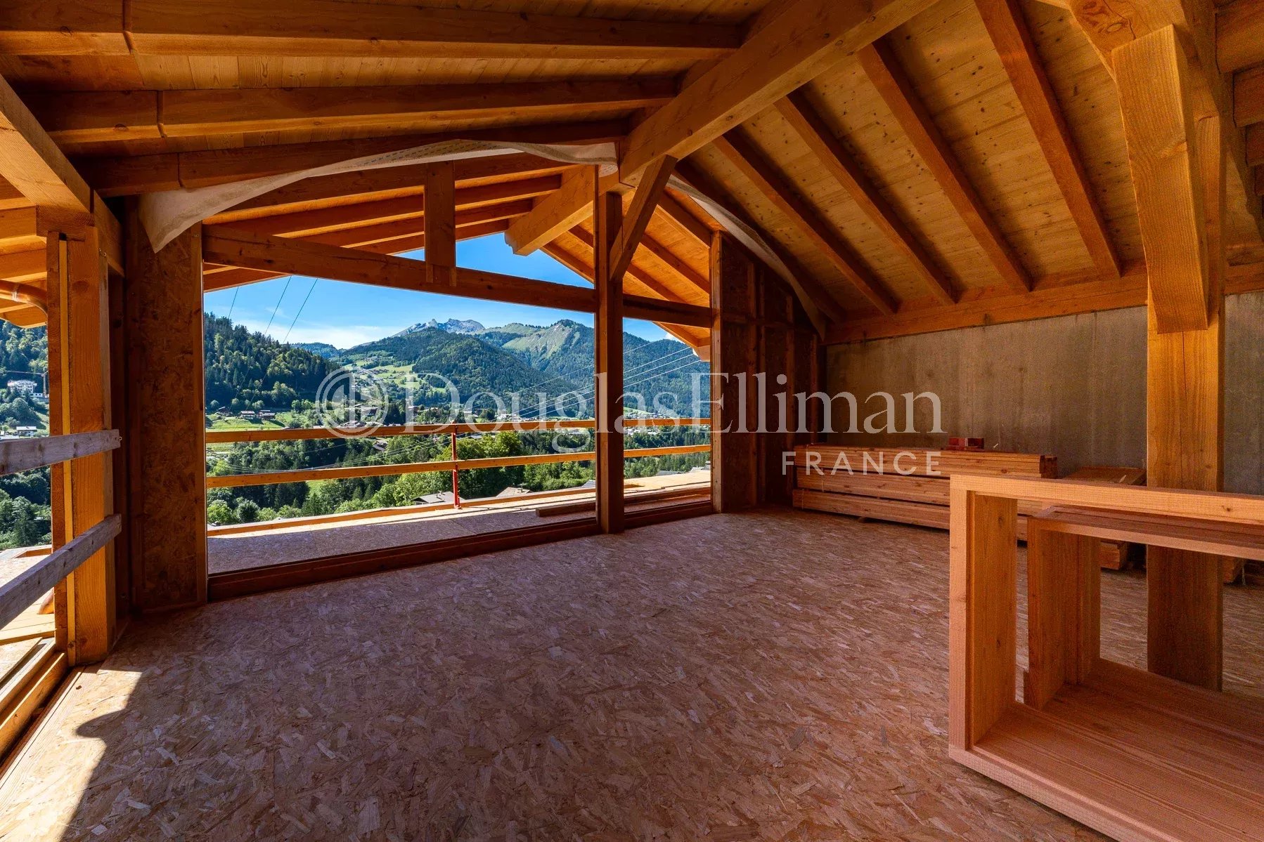 Orienté sud-ouest et situé en hauteur, le chalet bénéficie d'un ensoleillement optimal tout au long de l'année et d'une vue ininterrompue. Le chalet a été conçu pour maximiser la lumière et les vues avec un espace de vie à double hauteur au 2ème étage s'ouvrant sur un grand balcon-terrasse qui comprend un jacuzzi. Comme il s'agit d'une construction neuve, les acheteurs peuvent choisir parmi une gamme de finitions comprenant la cuisine et les salles de bains, les revêtements de sol et les carrelages.
