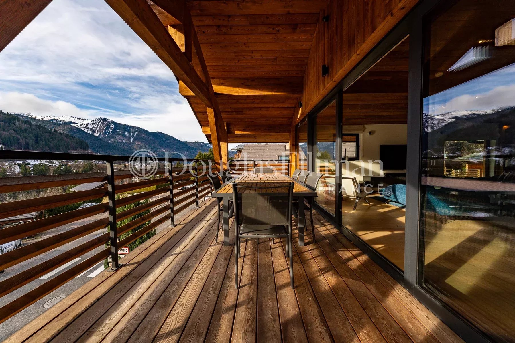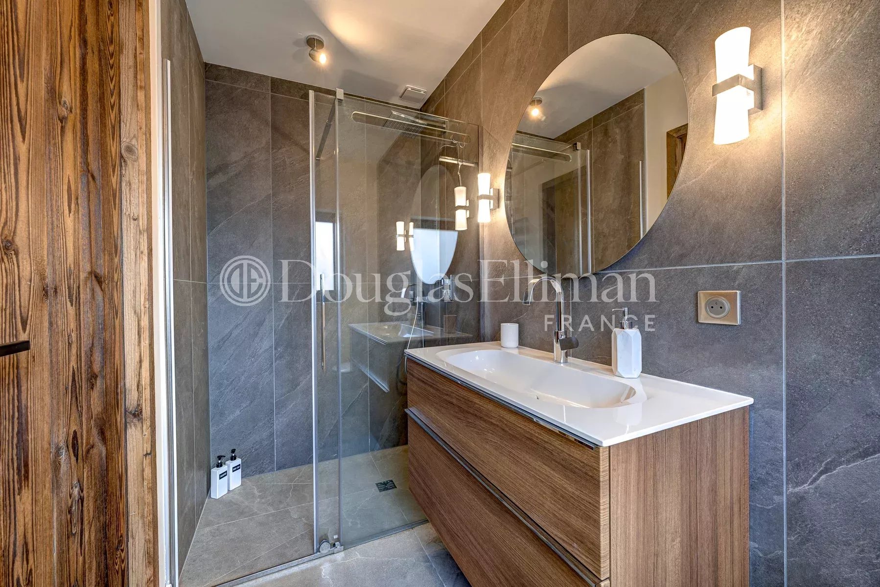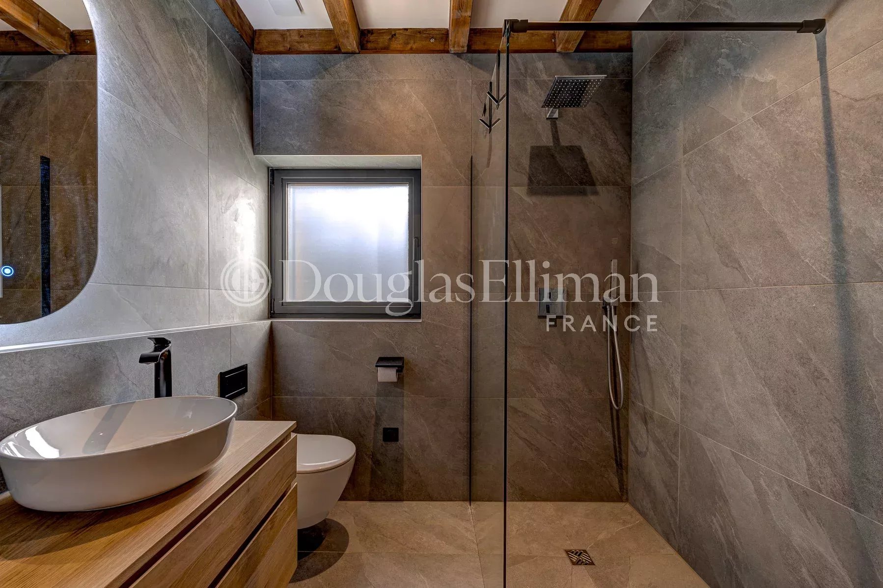 Achevé en 2022, le chalet bénéficie d’une performance énergétique de catégorie A et d’un design alpin moderne, avec des volumes généreux dans tout le bâtiment. Toutes les chambres disposent d’une salle de bain attenante, y compris une suite parentale de 25 m² au dernier étage avec une hauteur supplémentaire offrant une vue sur les jardins arrière. Le chalet comprend également une salle de cinéma, une salle de sport, un jacuzzi extérieur et un sauna tonneau avec vue sur la montagne.