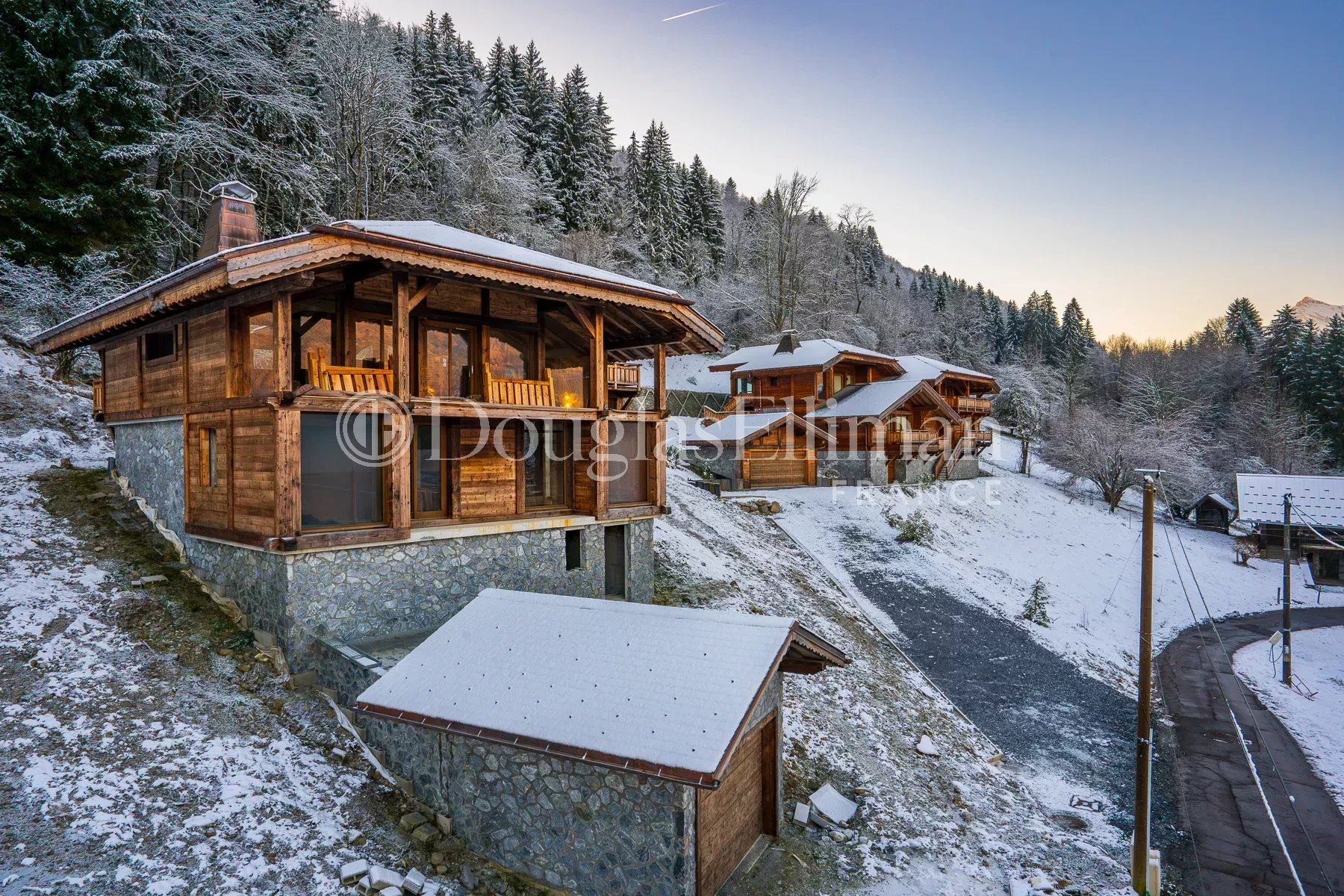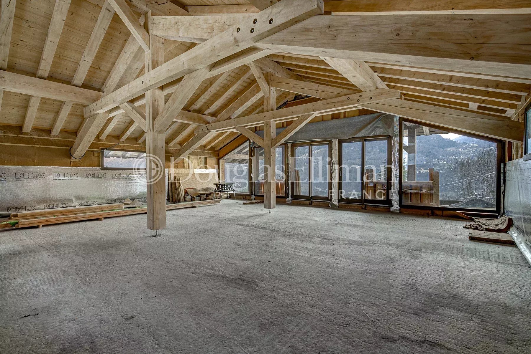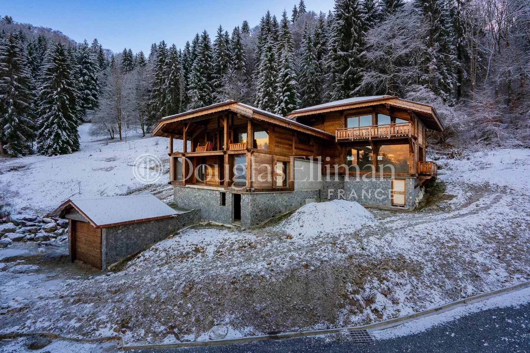 Le chalet Couzy est une toute nouvelle propriété de 300 m² dont l'enveloppe extérieure est terminée, laissant l'intérieur à l'acheteur qui pourra l'aménager et le finir à sa guise. Il est situé au-dessus du village de Morillon sur une route tranquille avec une vue dégagée sur la vallée et les sommets au-delà. Le chalet se trouve sur un grand terrain en bordure de forêt.