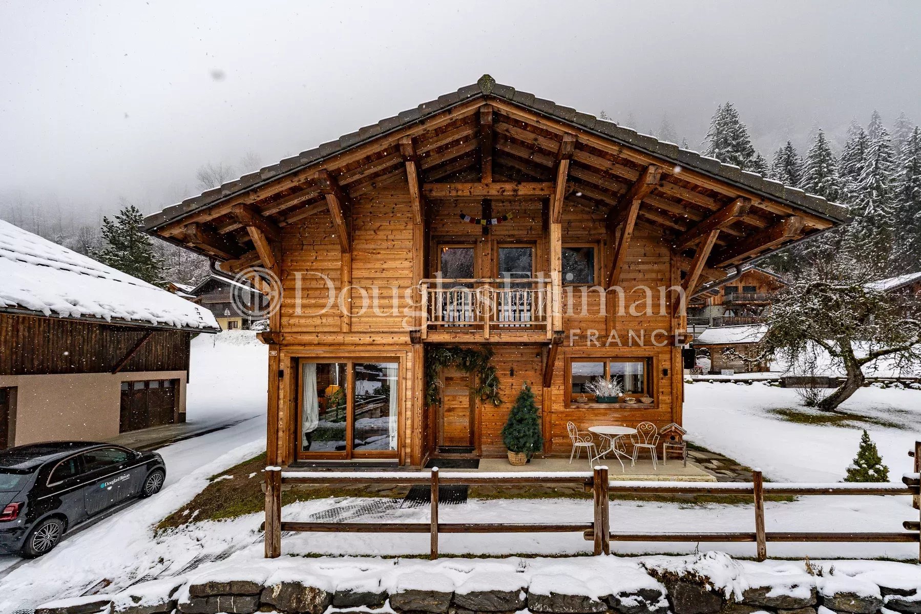 - Jardins et terrasses à l’avant et sur le côté du chalet