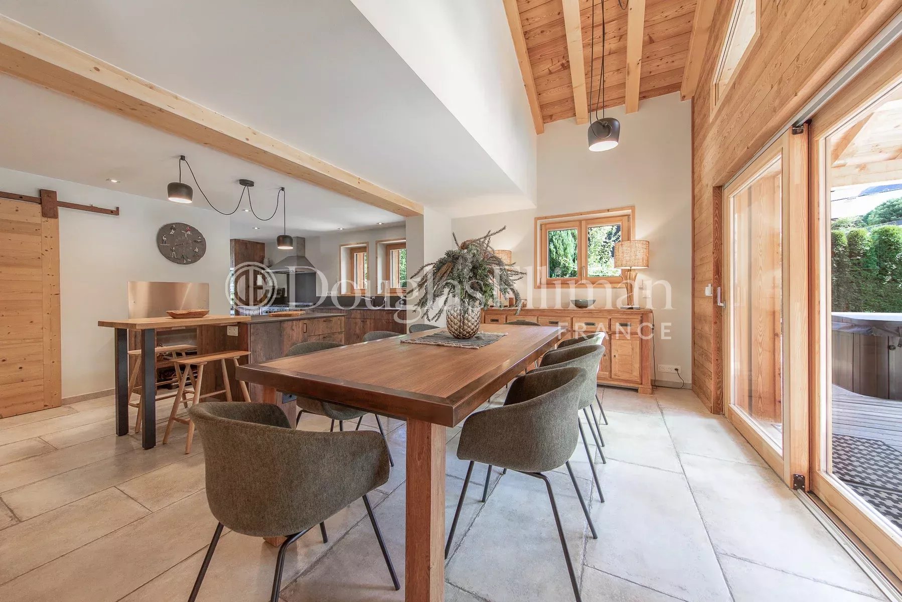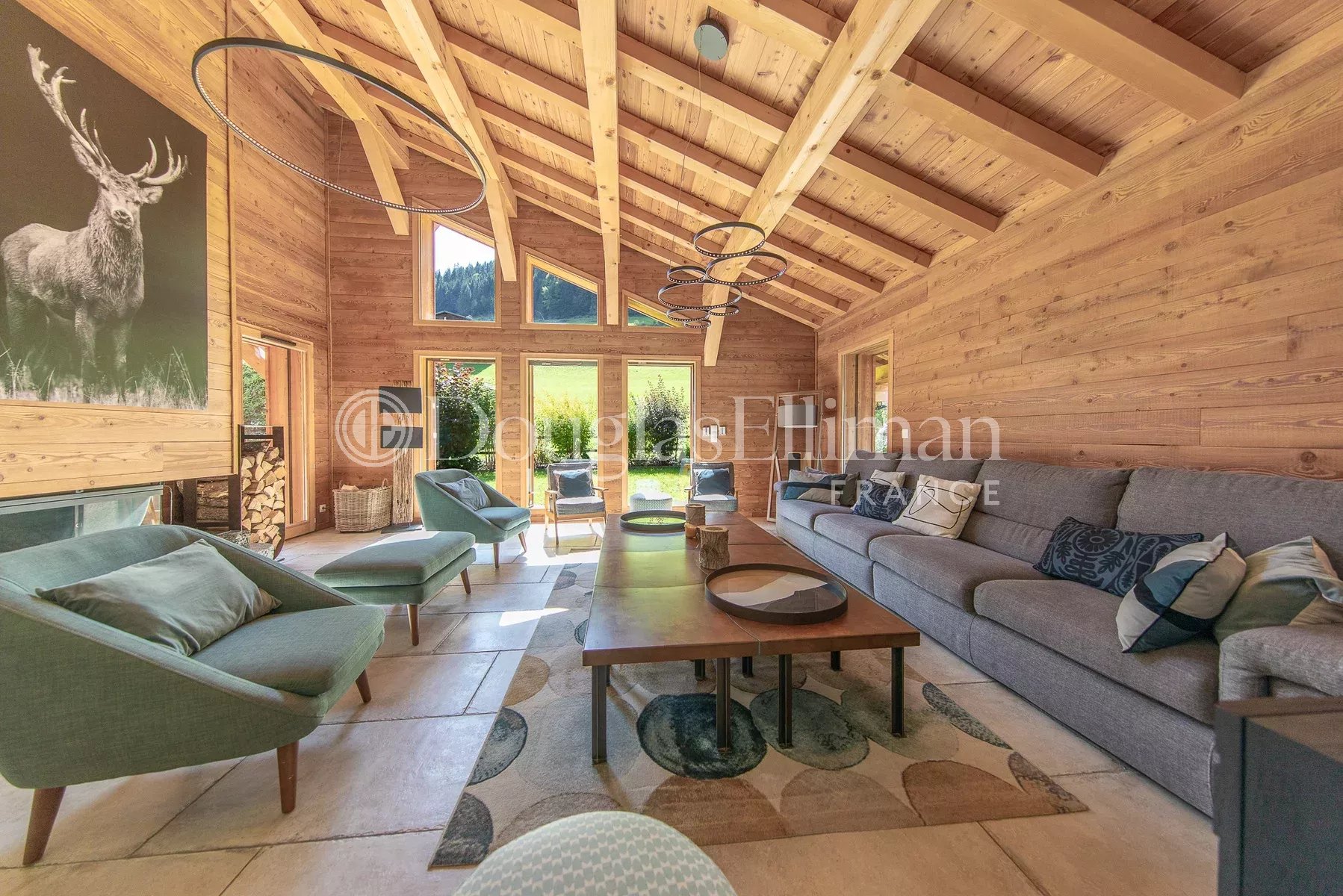 - Espace de vie ouvert à double hauteur avec cheminée