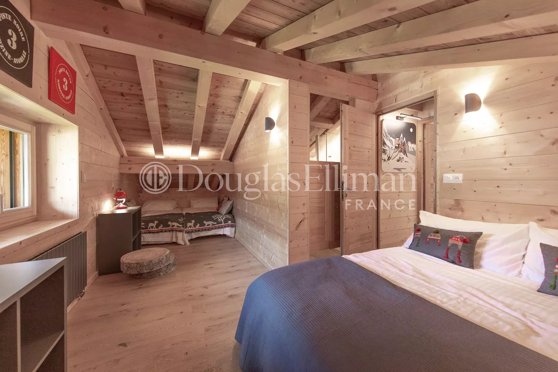 Aménagé sur trois étages, le chalet dispose d'un impressionnant espace de vie à double hauteur, avec des chambres réparties sur tous les niveaux. Il dispose également d'un sauna, d'une salle de jeux, d'un garage, d'un local à skis, de jardins et d'une terrasse spacieuse avec un bain à remous. Le Chalet Fleurs bénéficie d'un système de chauffage moderne et d'une rare cote énergétique B, un avantage inhabituel qui le distingue en termes d'efficacité tout en le protégeant des besoins d'amélioration futurs.