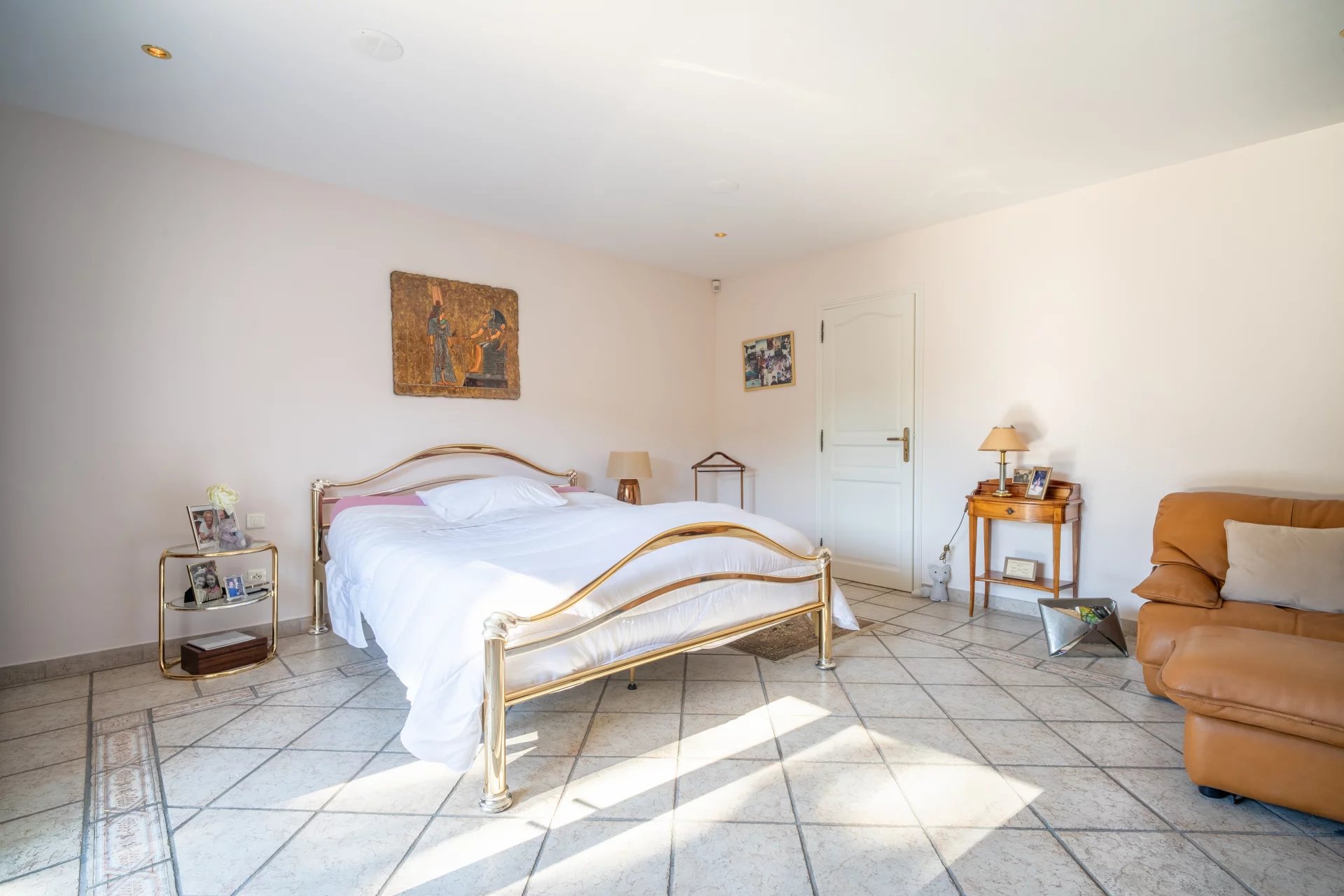 Cette belle maison dispose de trois chambres soigneusement aménagées, dont une spacieuse suite parentale située au rez-de-chaussée, assurant confort et intimité. Les espaces de vie lumineux et accueillants s’ouvrent sur un jardin paysagé, et piscine scintillante complète l’espace extérieur, idéale pour profiter des journées ensoleillées en famille ou entre amis.