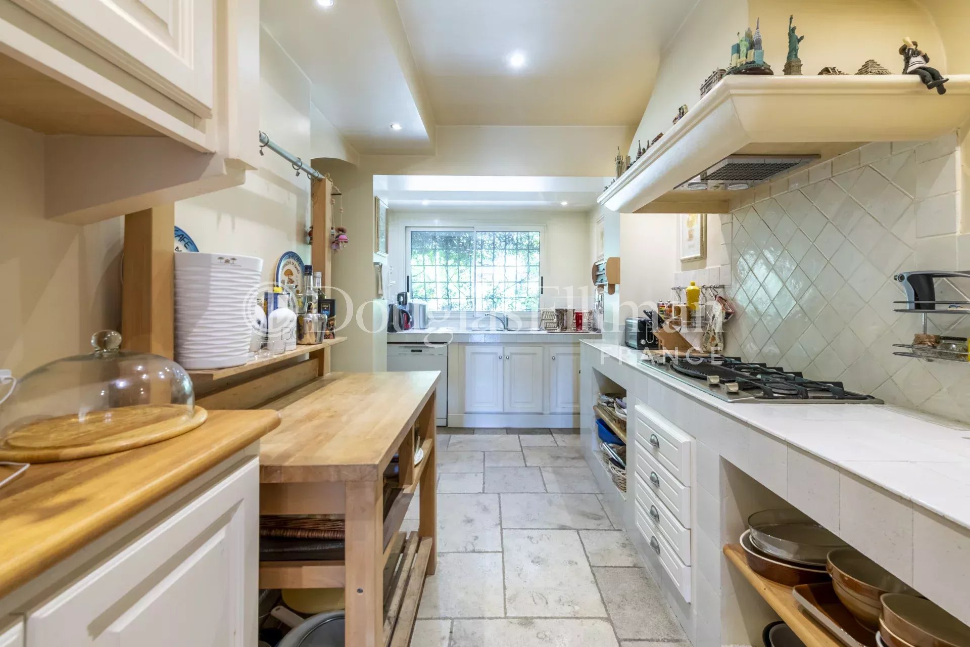 La maison comprend sept chambres, dont cinq avec salle de bains privative. Un appartement situées au niveau du jardin, comportent une kitchenette et une grande salle de divertissement pouvant être transformée en appartement.