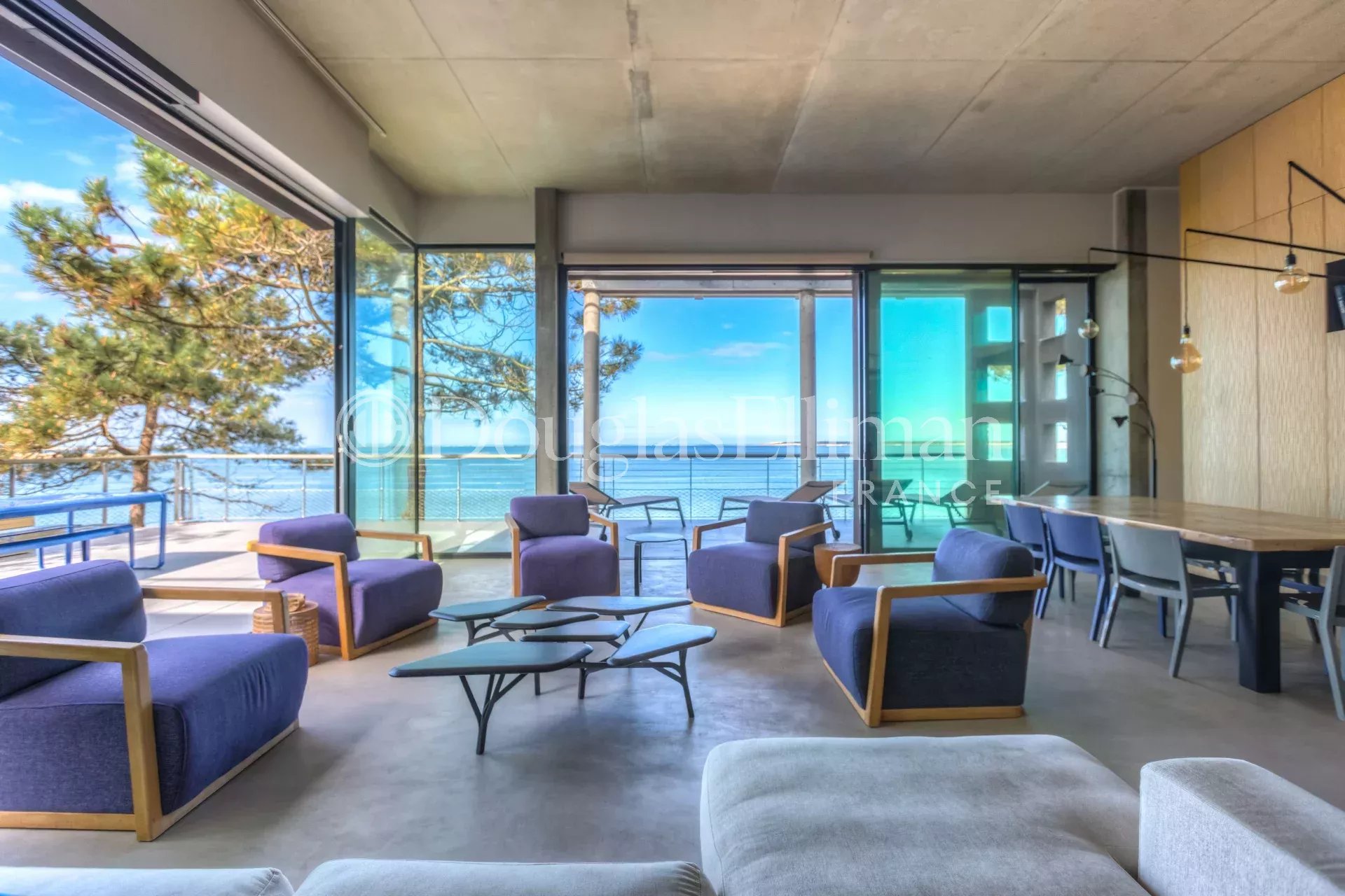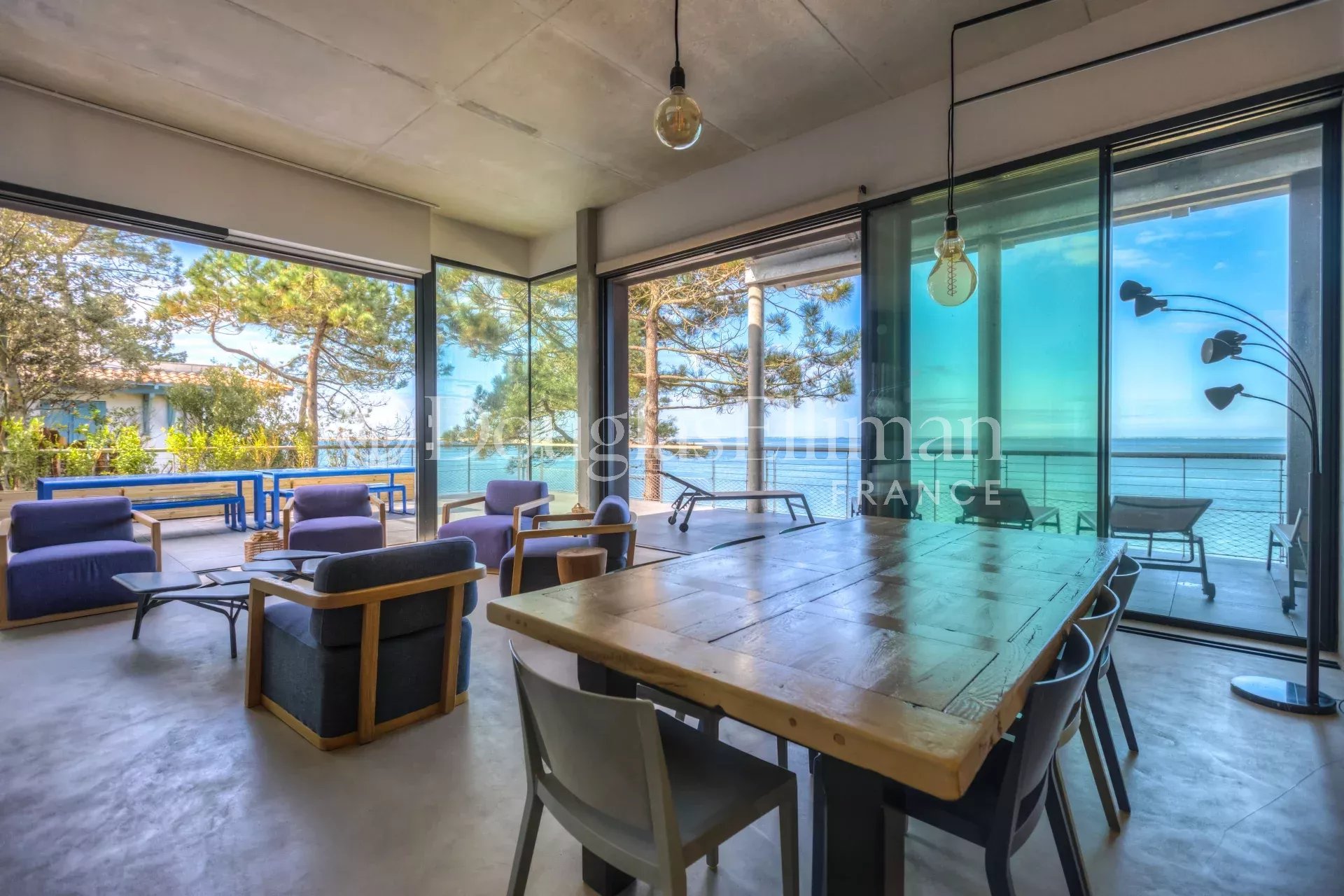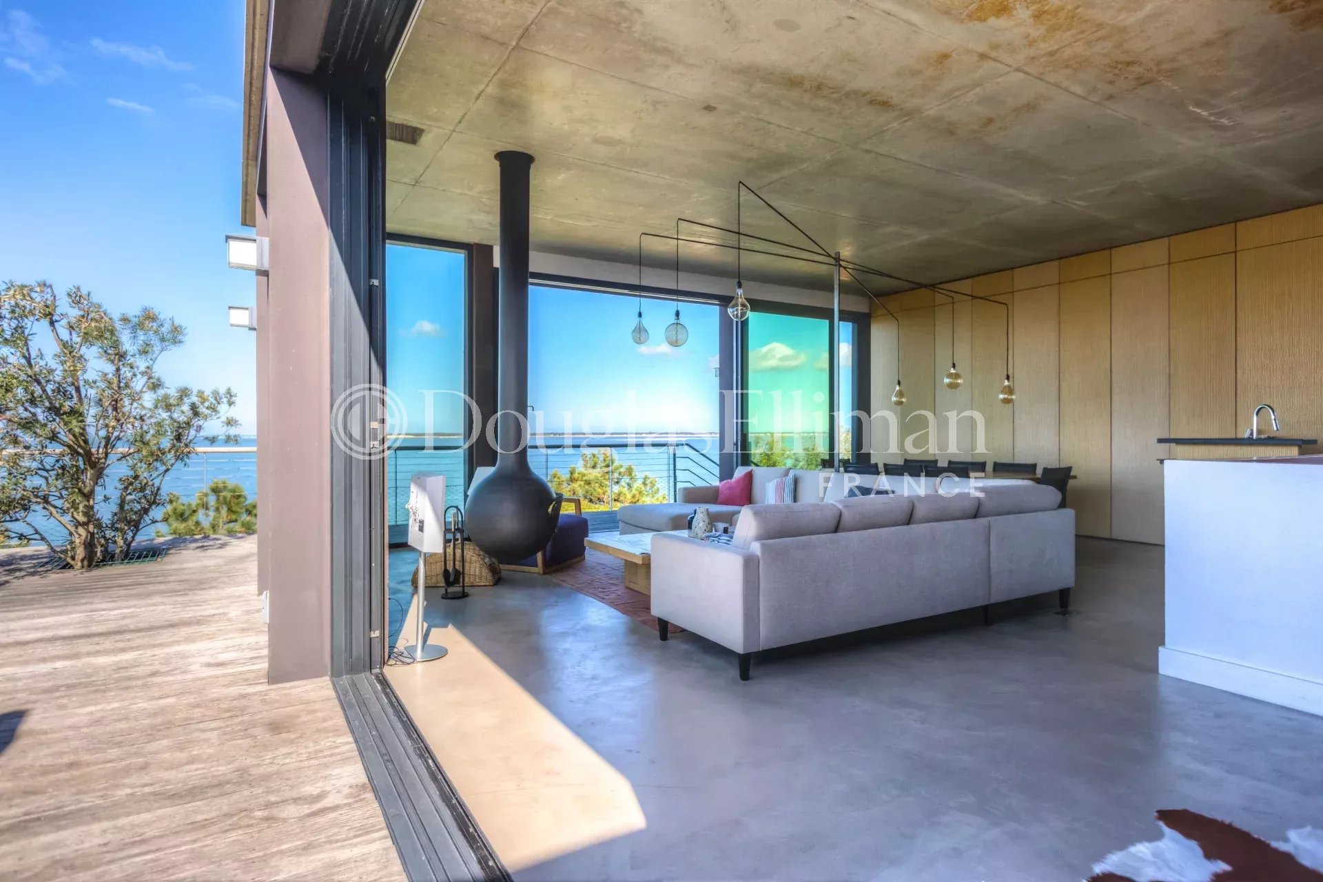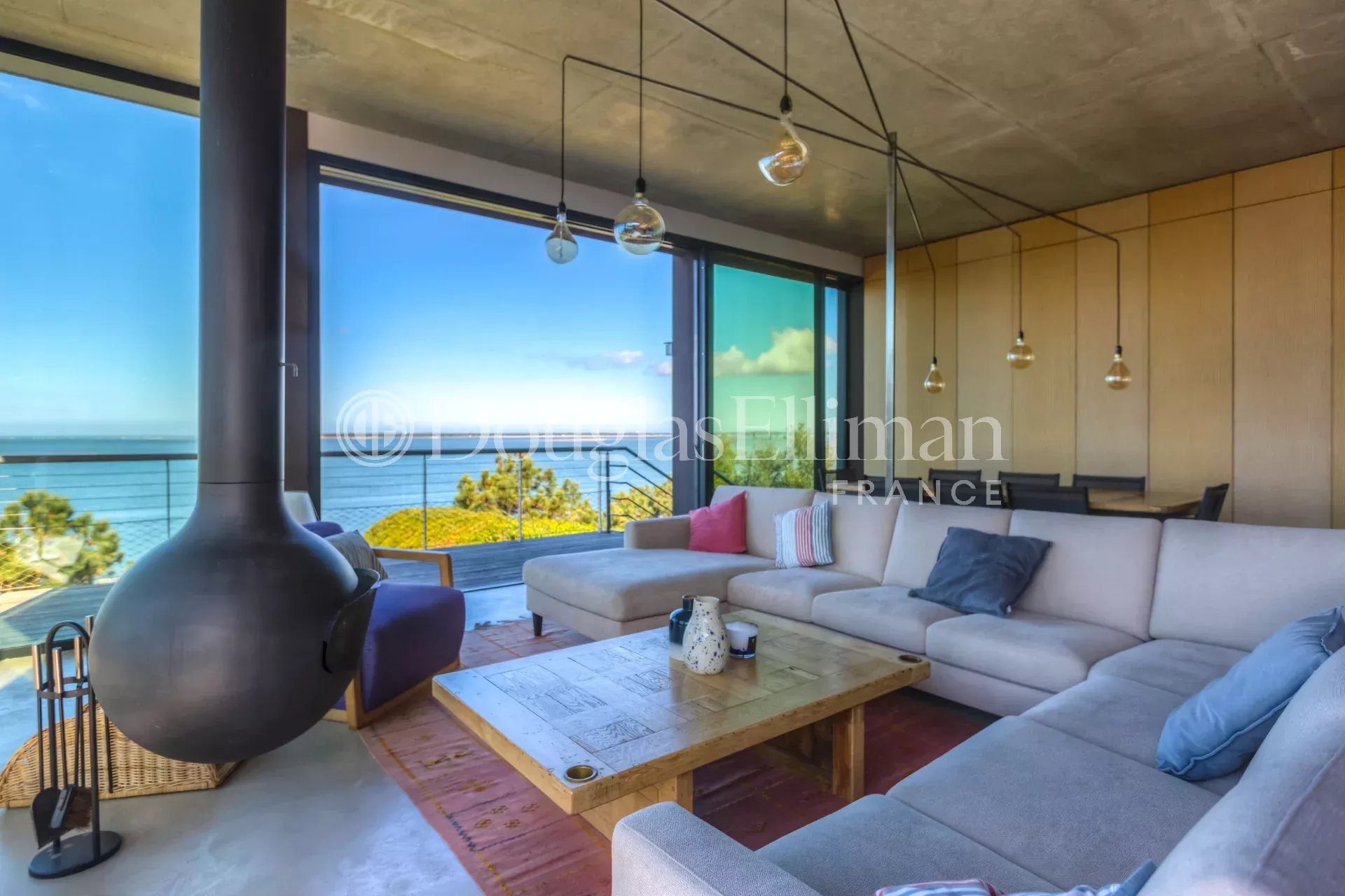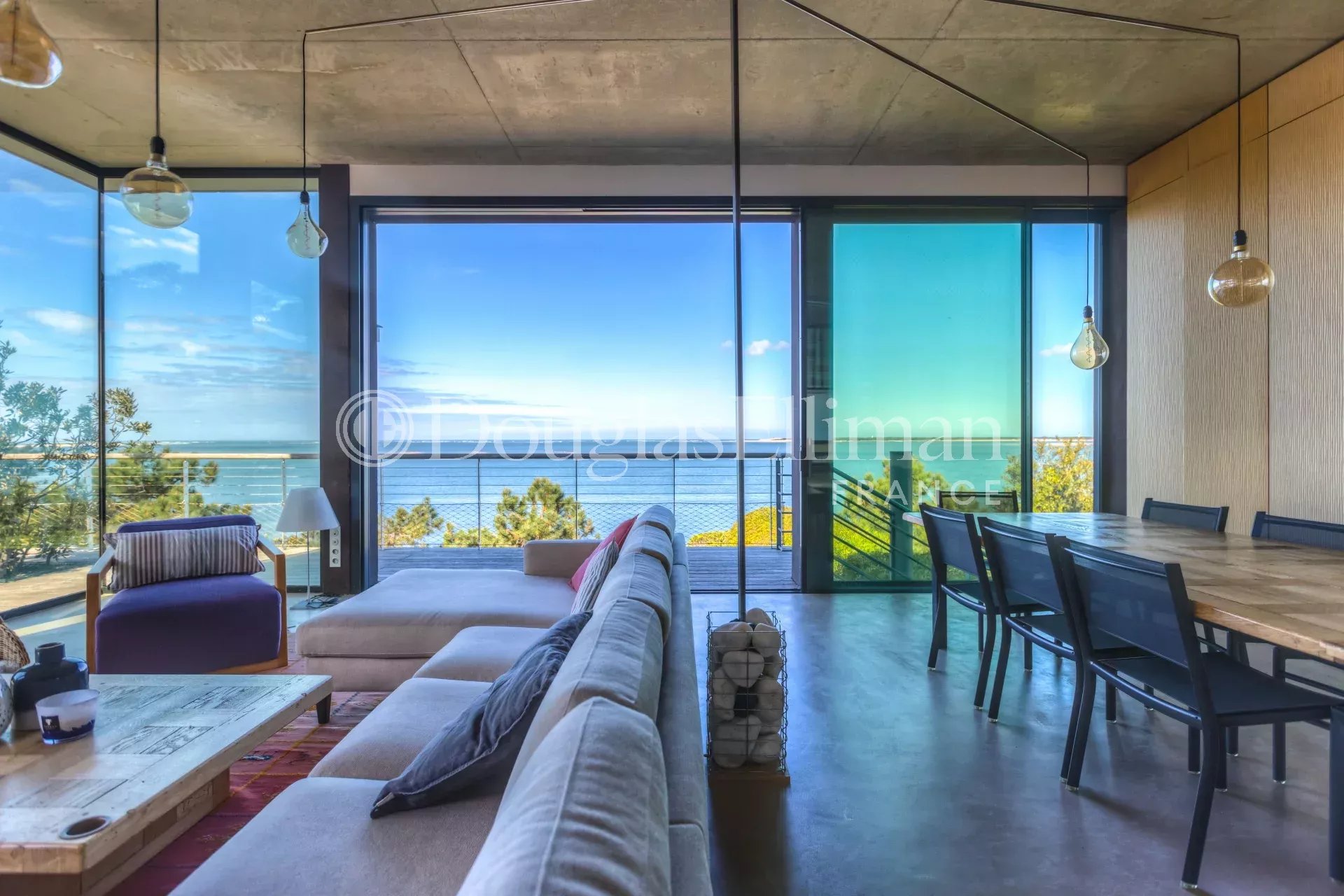 À flanc de côte, à proximité immédiate de la majestueuse Dune du Pilat et les eaux changeantes du Bassin d’Arcachon, cet ensemble unique de deux villas contemporaines s’inscrit avec élégance dans le paysage, telle une œuvre d’architecture posée en cascade sur le littoral.