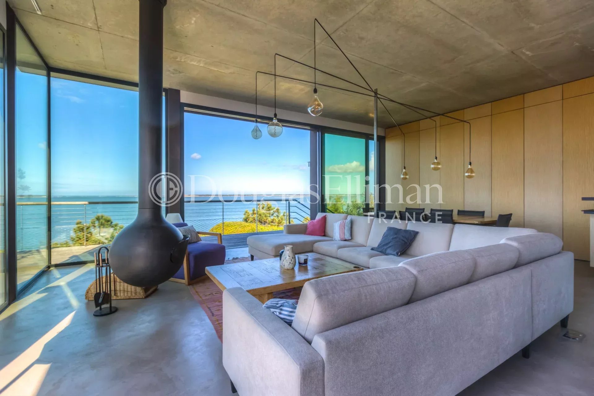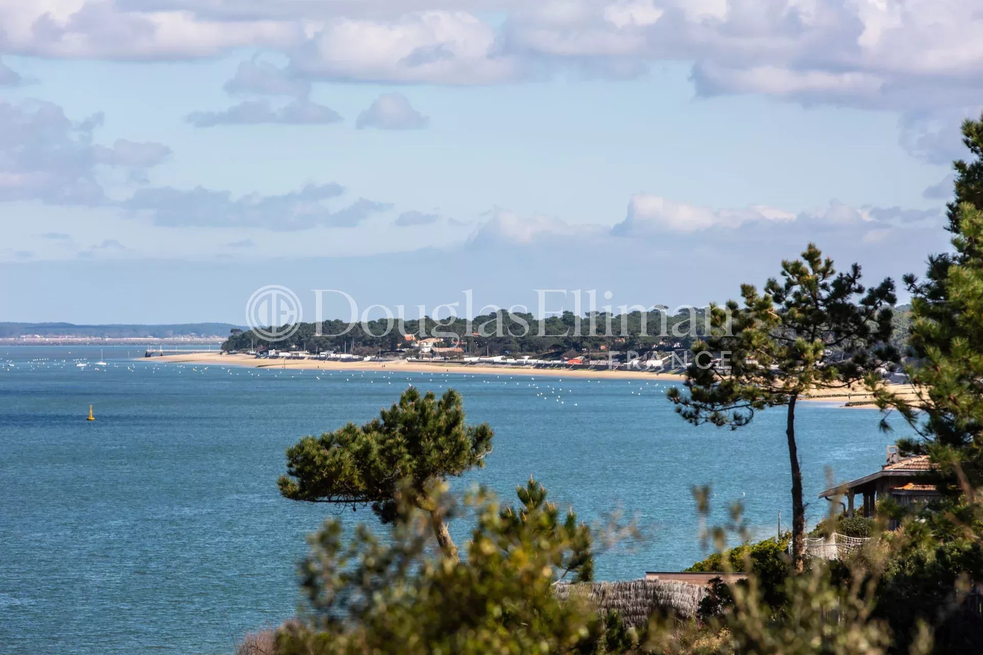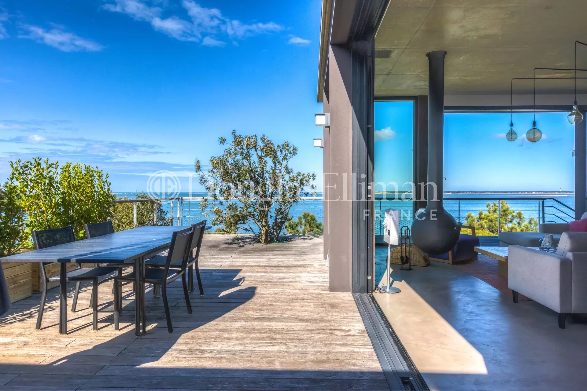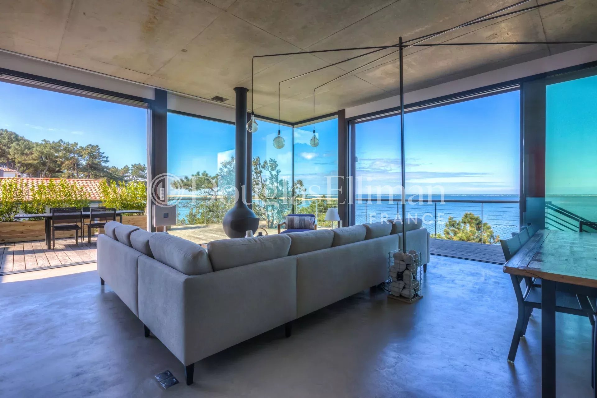 À flanc de côte, à proximité immédiate de la majestueuse Dune du Pilat et les eaux changeantes du Bassin d’Arcachon, cet ensemble unique de deux villas contemporaines s’inscrit avec élégance dans le paysage, telle une œuvre d’architecture posée en cascade sur le littoral.