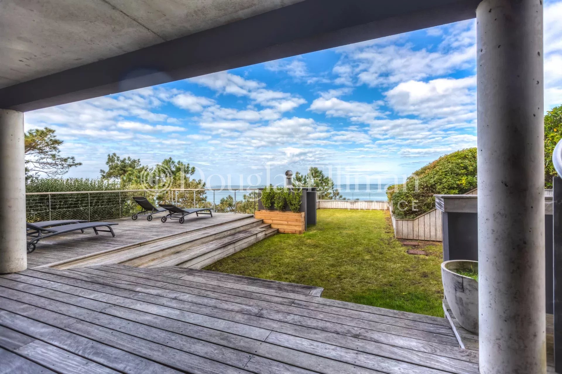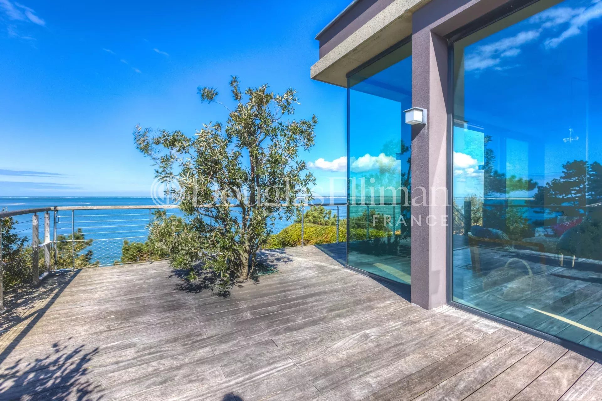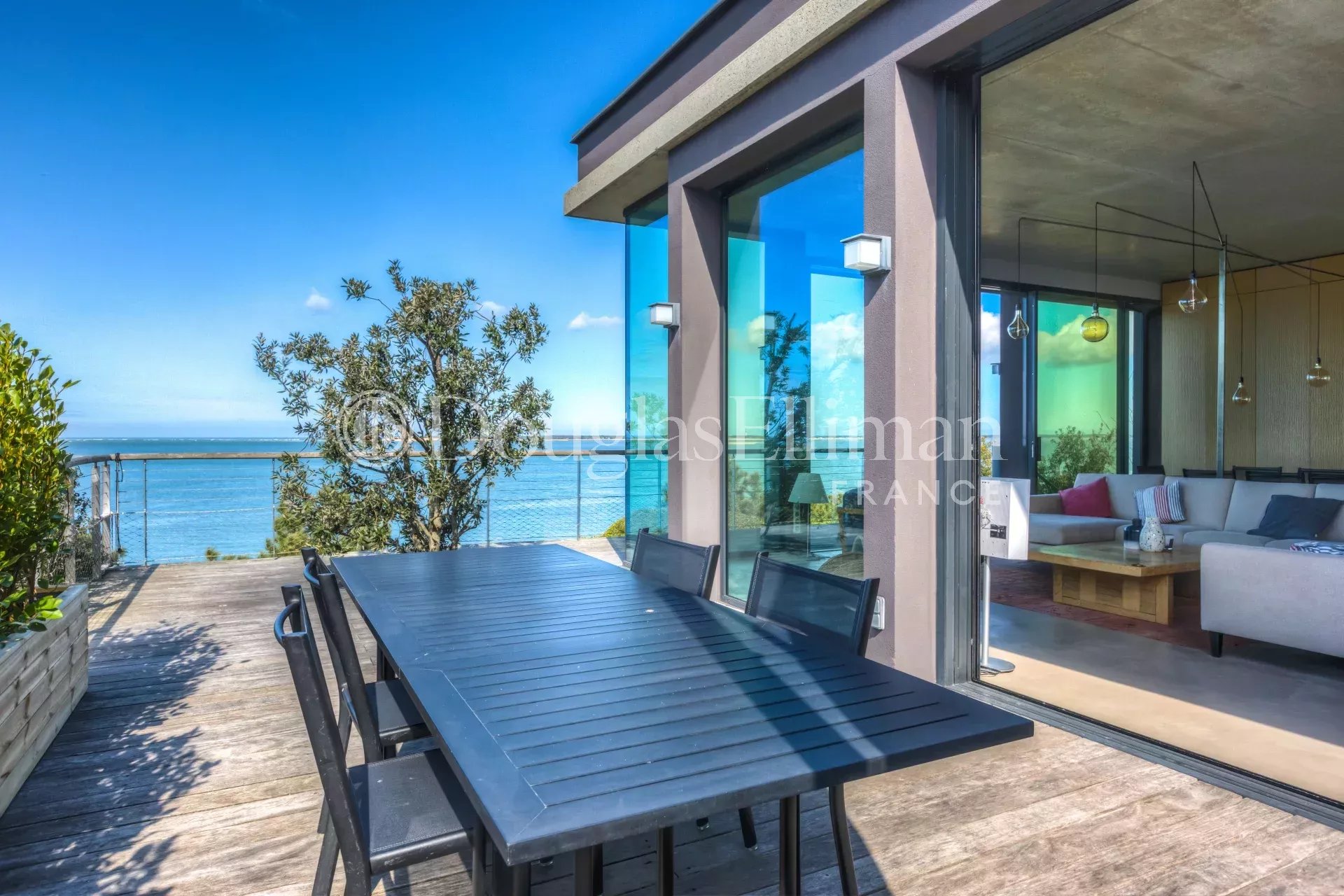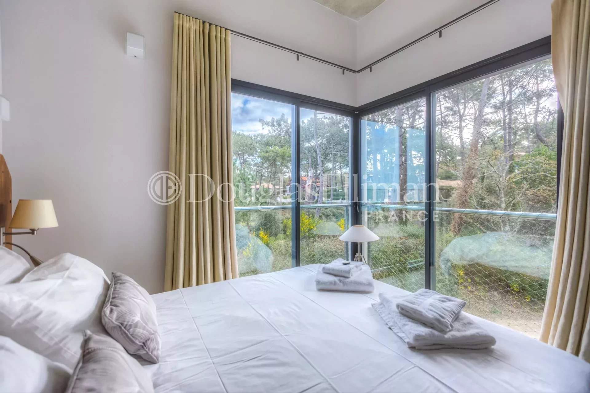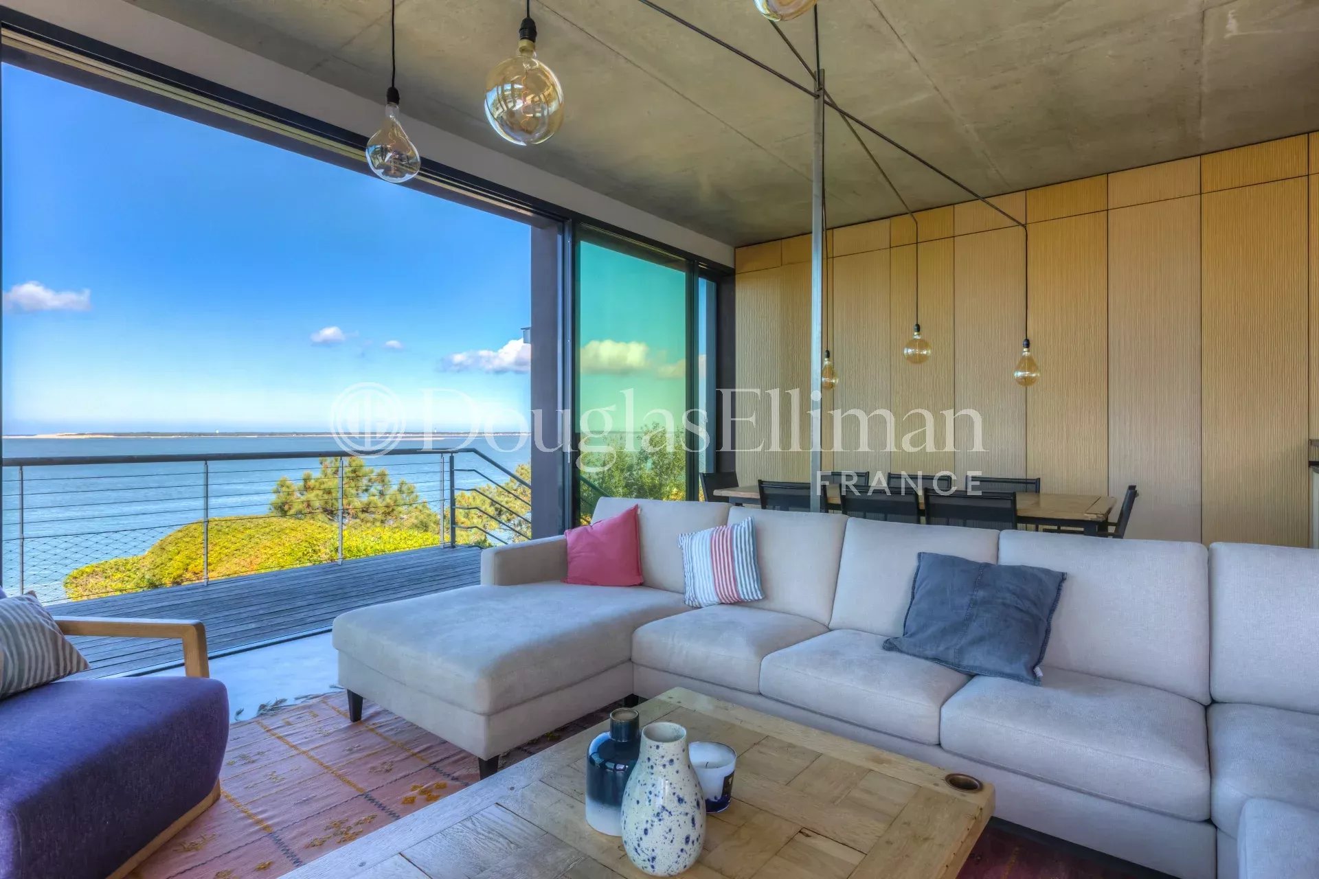 À flanc de côte, à proximité immédiate de la majestueuse Dune du Pilat et les eaux changeantes du Bassin d’Arcachon, cet ensemble unique de deux villas contemporaines s’inscrit avec élégance dans le paysage, telle une œuvre d’architecture posée en cascade sur le littoral.