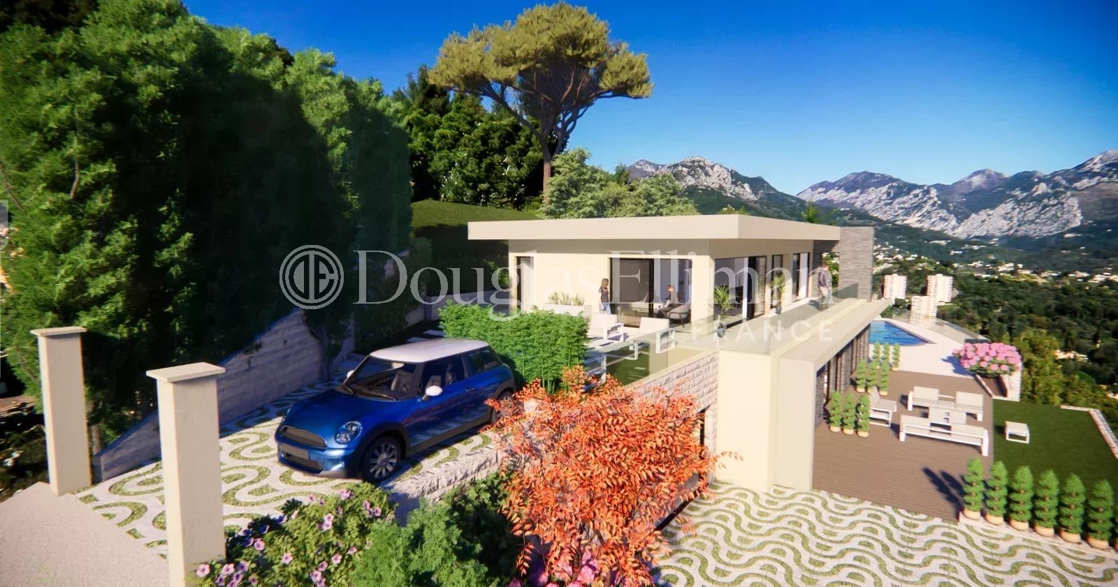 Récemment rénovée, cette villa est nichée au sein d'un domaine privé et sécurisé à Roquebrune Cap Martin, proche de Monaco.