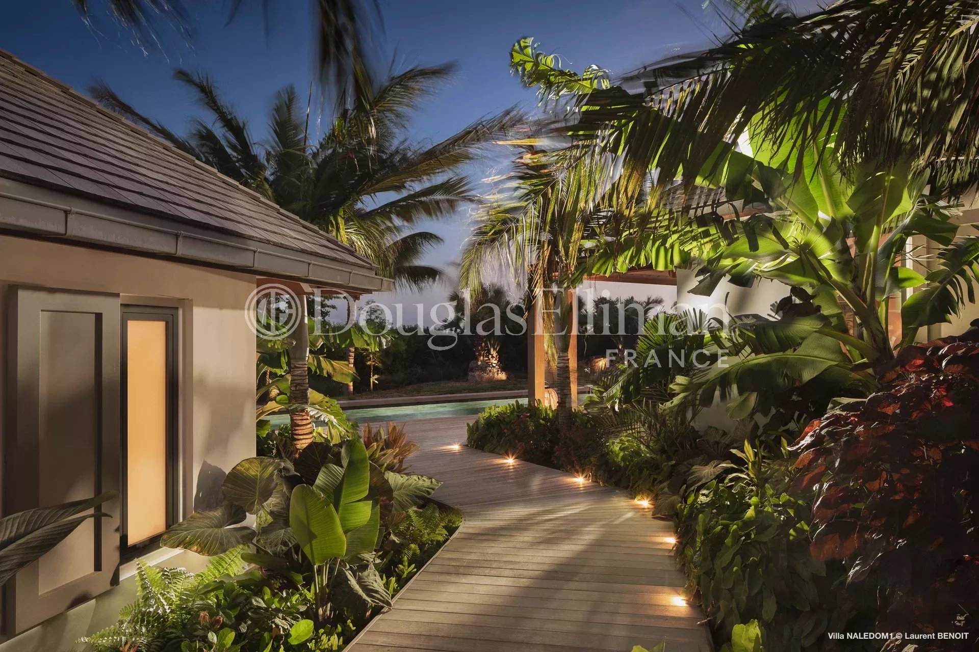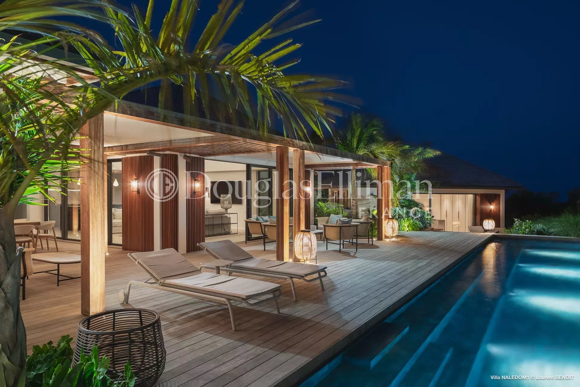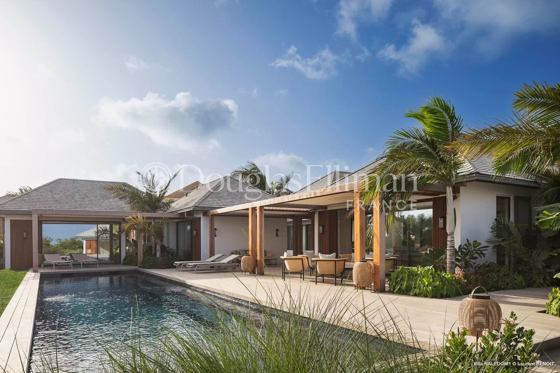 Au cœur d’un jardin tropical soigneusement aménagé, la villa, qui bénéficie d’un léger aperçu mer, dispose d’une grande piscine, d’un patio dinatoire et de quatre places de stationnement privatifs.